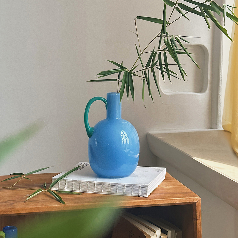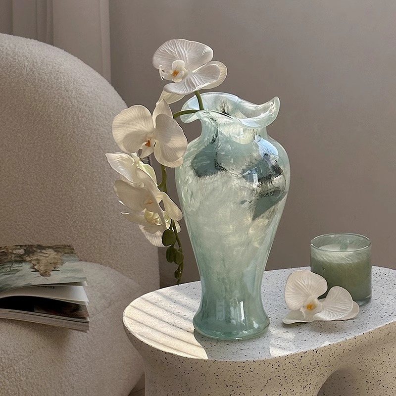 LIFE轻奢网红ins风简约浅蓝色玻璃花瓶摆件水培鲜花客厅插花装饰