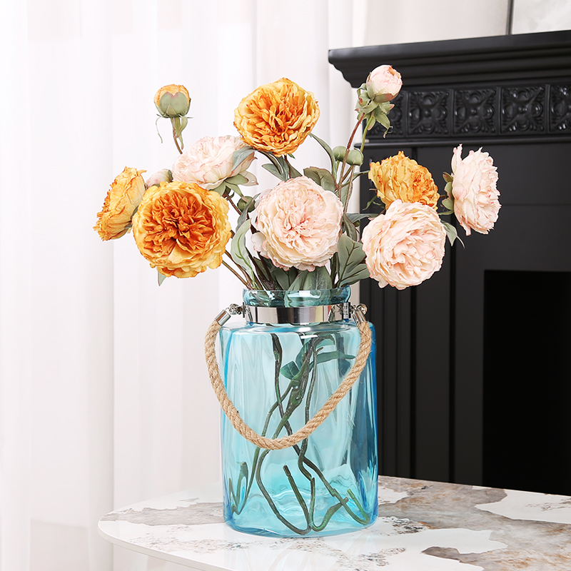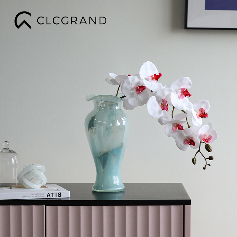 现代可及豪华高端蓝色玻璃花瓶客厅牡丹花卉栽培装置法国圆肚玻璃