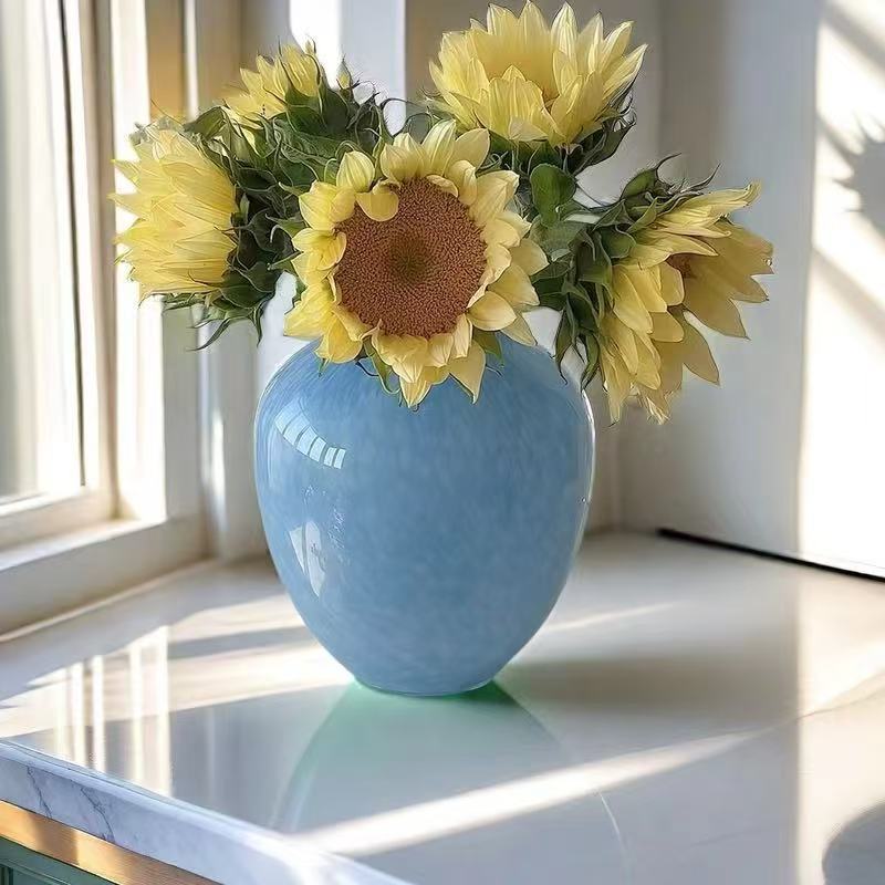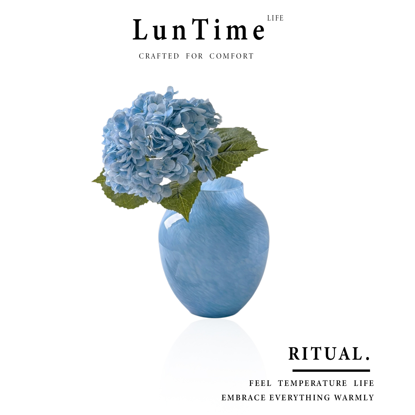 LunTime生活极简风蓝色玻璃花瓶圆形简约家居装饰插花摆件ins花器
