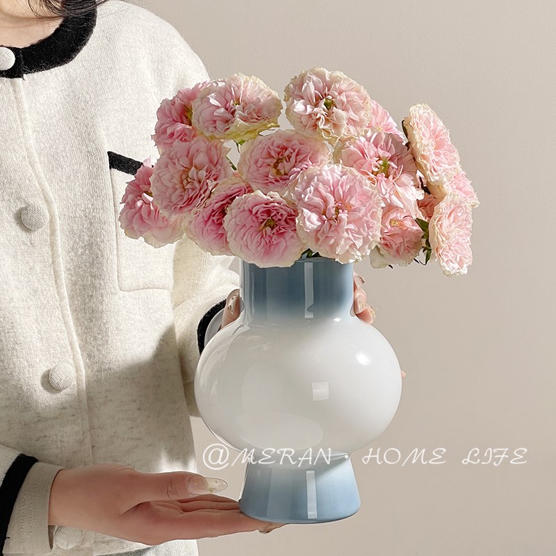 网红简约现代中古风m白蓝色玻璃花瓶摆件水培鲜花客厅插花装饰花