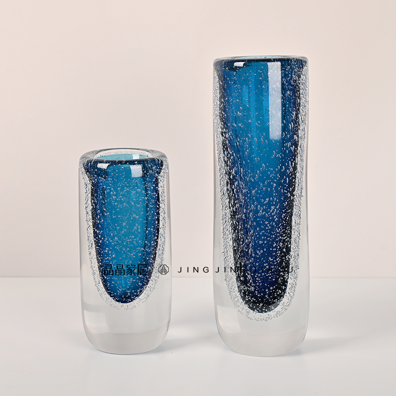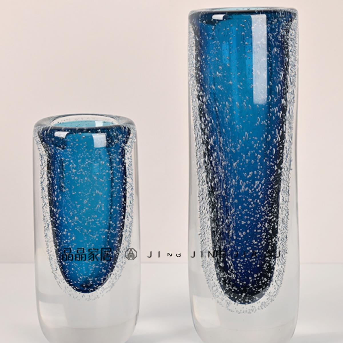 现代简约蓝色玻璃花瓶摆件工艺品客厅样板房玄关民宿玻璃摆设装饰