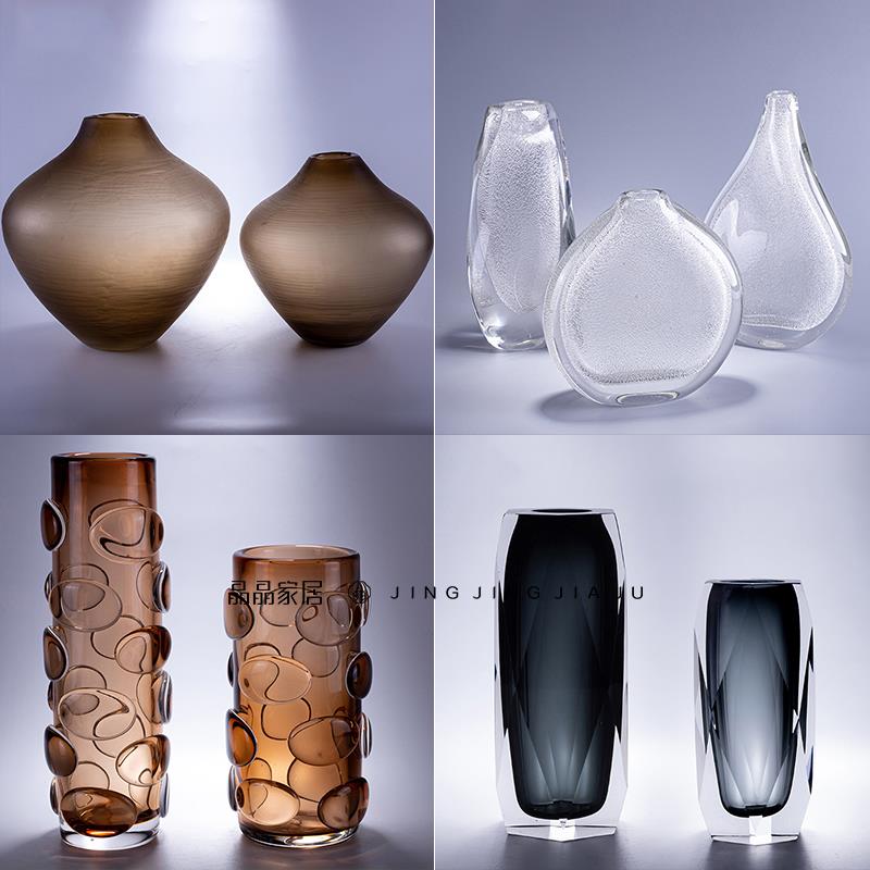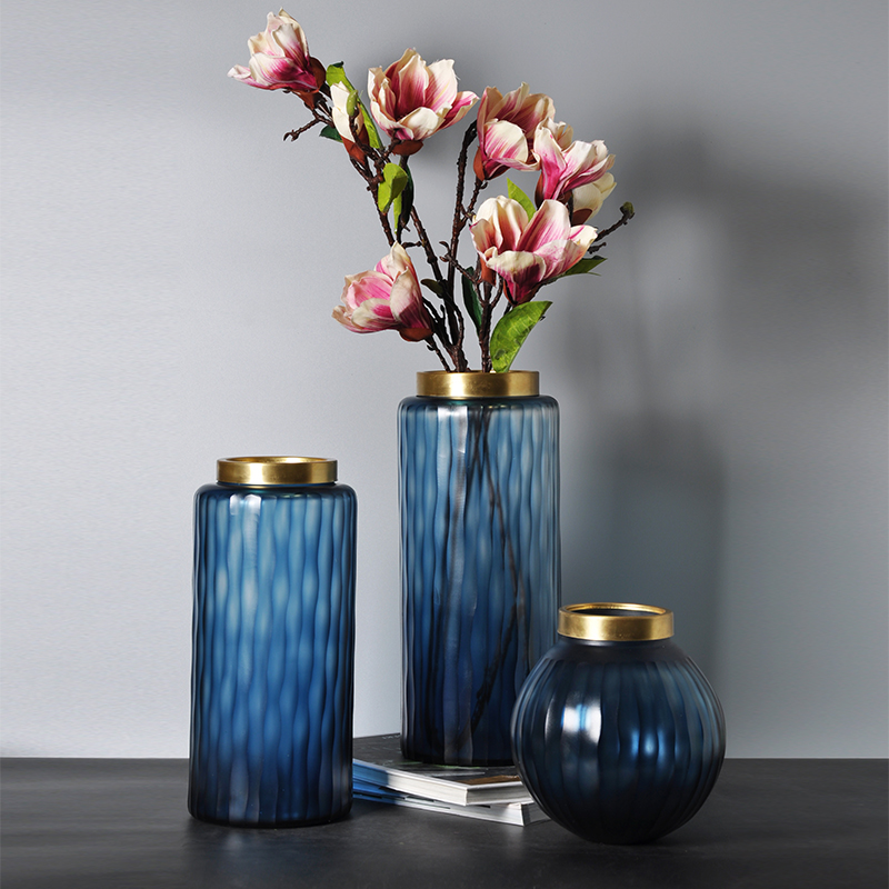轻奢现代蓝色玻璃花瓶套装样板间售楼处插花百合鲜花玫瑰花装饰品