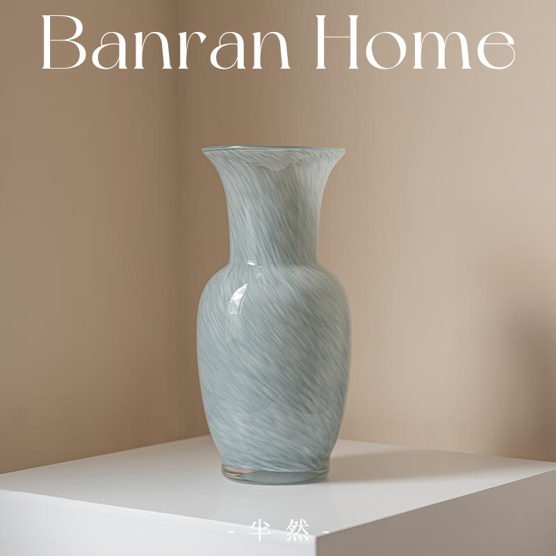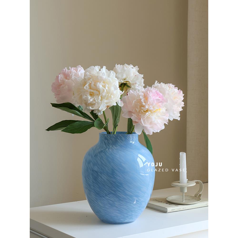 半然花瓶蓝色琉璃复古摆件轻奢高级感玻璃客厅插花礼物餐桌家居大