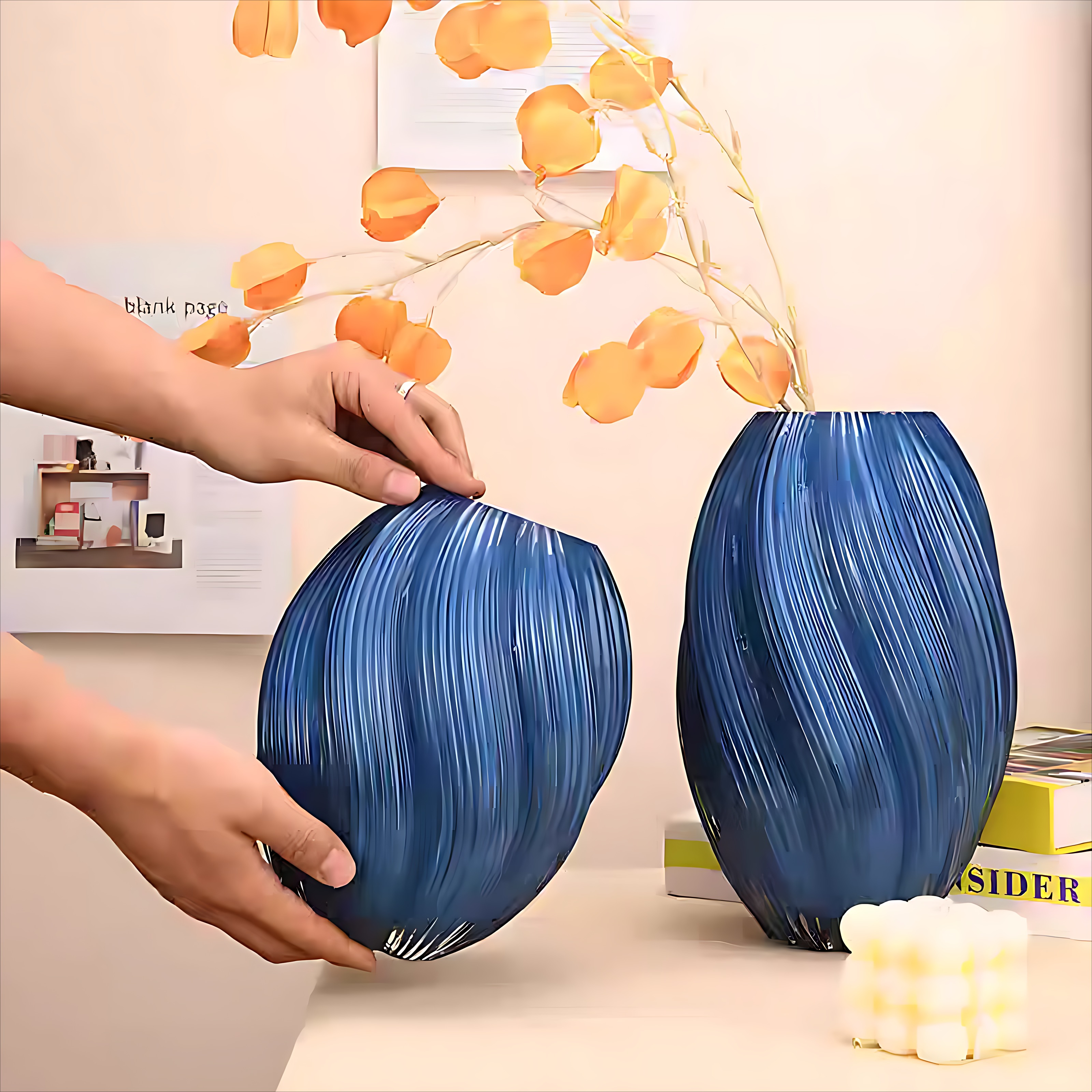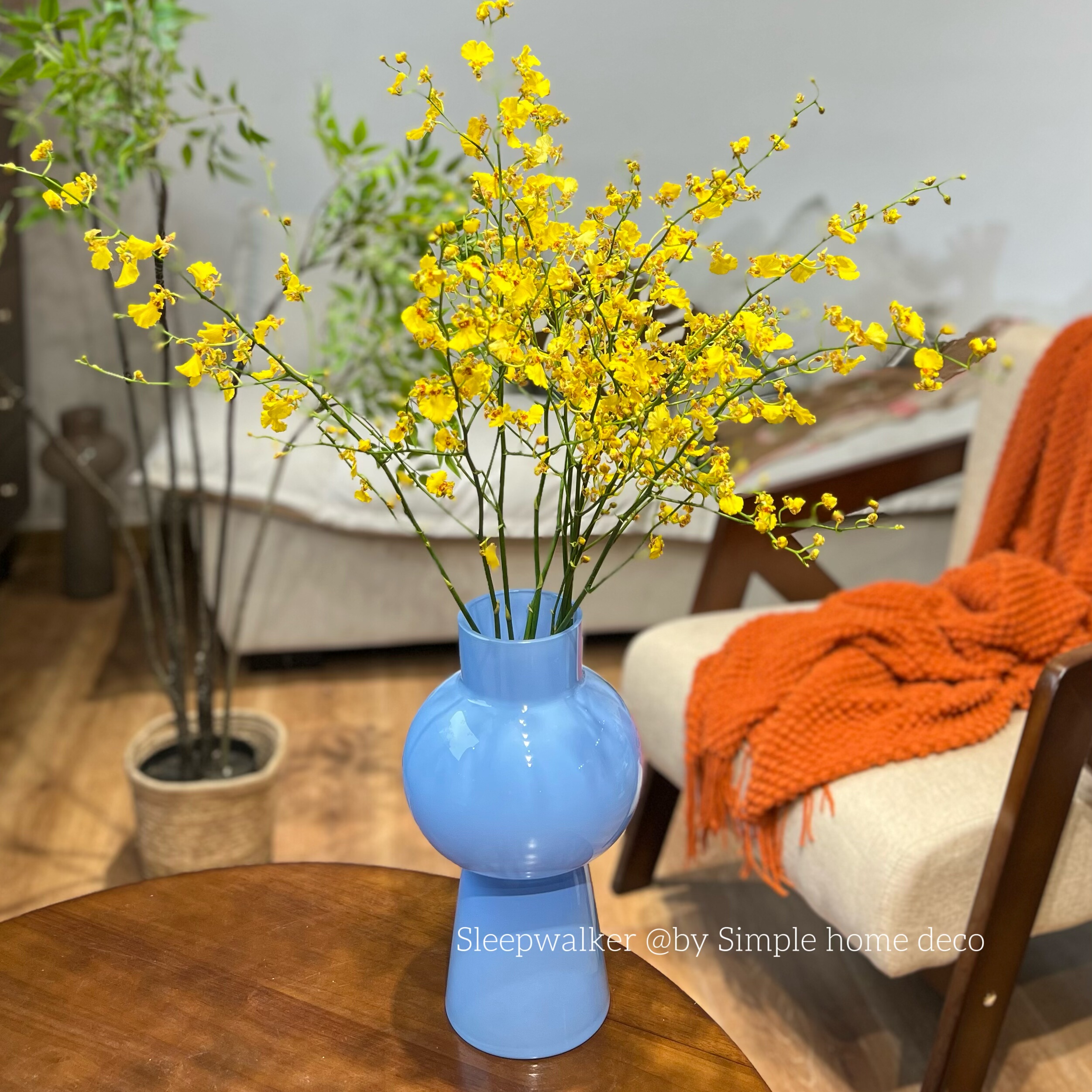 高级感蓝色玻璃花瓶艺术客厅小众装饰品北欧简约高端摆件琉璃花器