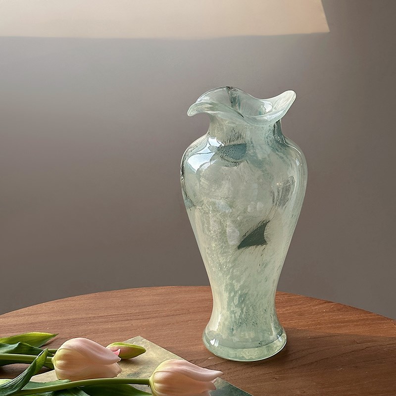 法式中古花瓶玻璃清新蓝色高级感插鲜花器简约桌面摆件居家装饰品