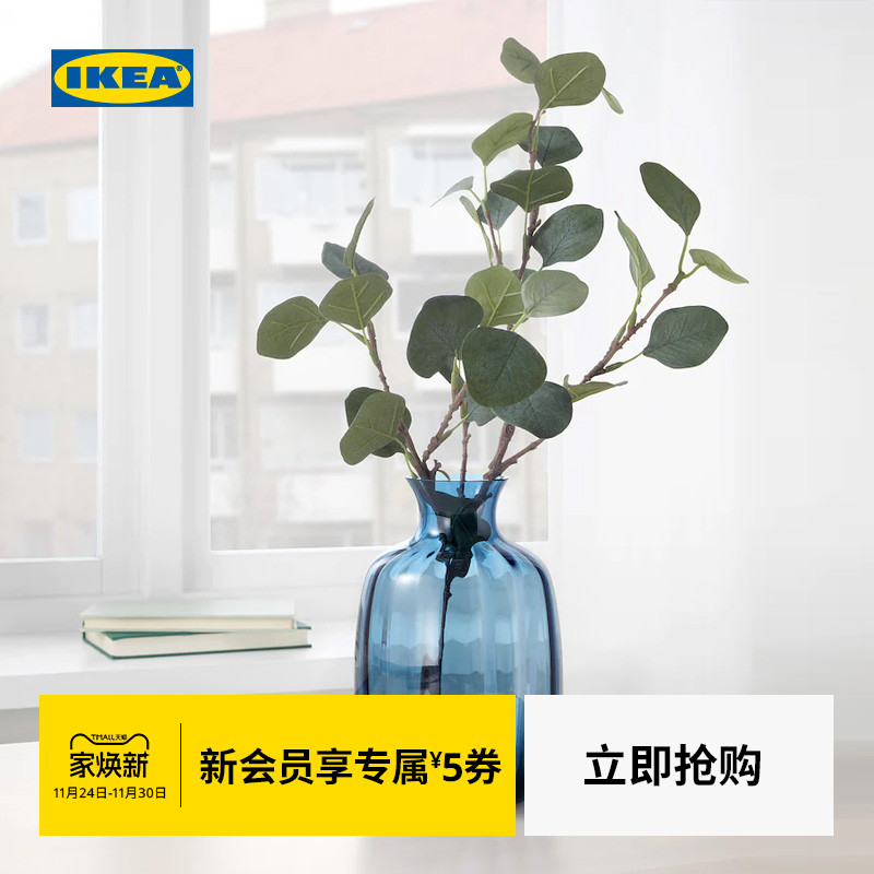 IKEA宜家TONSATTA通赛塔蓝色玻璃花瓶21厘米简约现代
