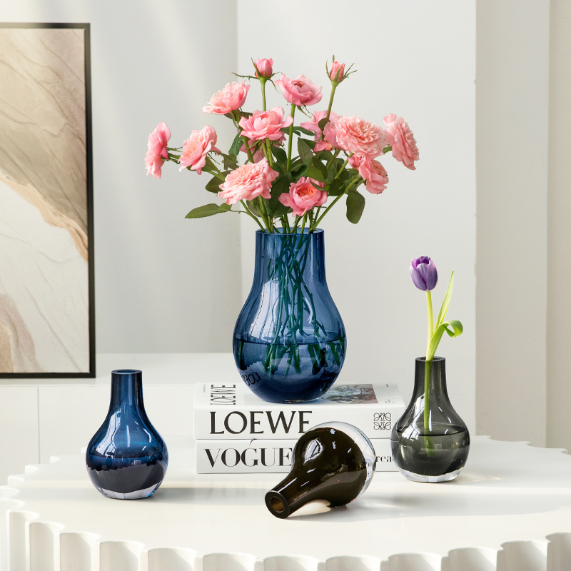 轻奢创意加厚蓝色玻璃花瓶可水培摆件客厅茶几餐桌样板间插花花器