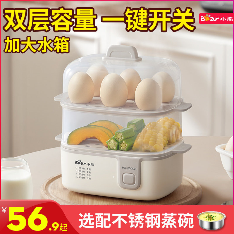 小熊定时蒸蛋器自动断电家用小型双层早餐煮鸡蛋神器多功能煮蛋器