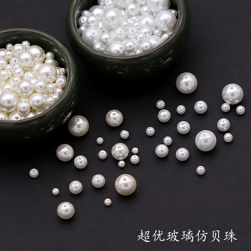 50颗仿贝珠3/4/6/8/10/12mm高亮玻璃仿珍珠diy古风发簪花心材料