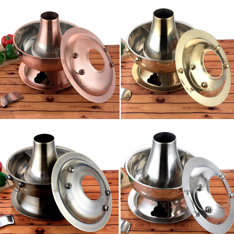 现货速发铜火锅仿老式碳锅紫铜仿铜不锈钢老北京木炭火锅盆鸳鸯炉