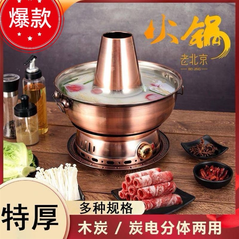 老北京木炭火锅炉不锈钢仿铜鸳鸯锅家用炭电两用老式火锅网红火锅
