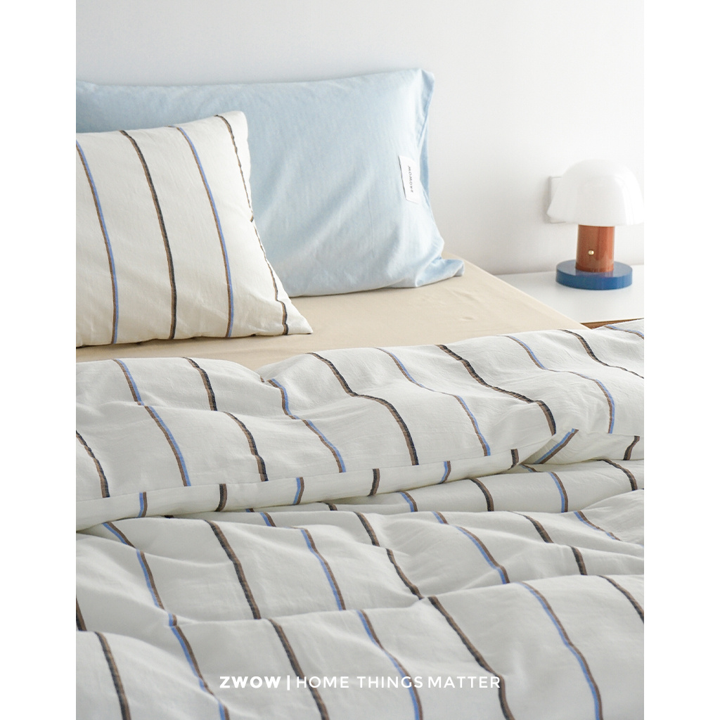 造卧zwow北欧风ins双色条纹缎纹柔软侘寂风白棕蓝全棉纯棉四件套