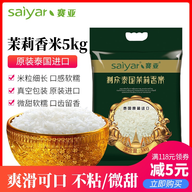 赛亚原装泰国茉莉香米10斤 真空包装进口长粒米大米籼米包邮5kg