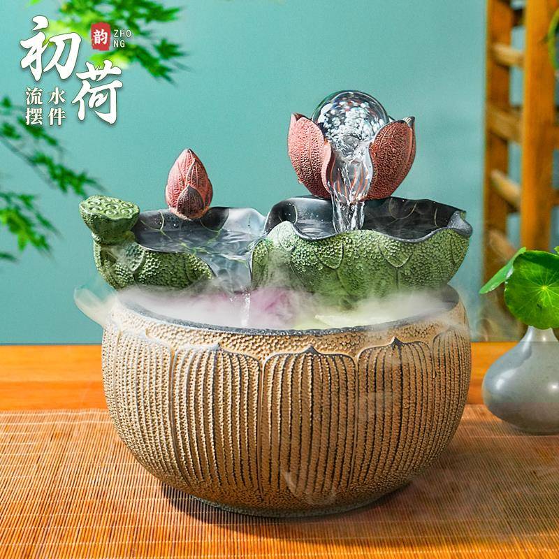 创意荷叶客厅循环流水喷泉摆件简约小型办公桌面招财电视柜装饰品