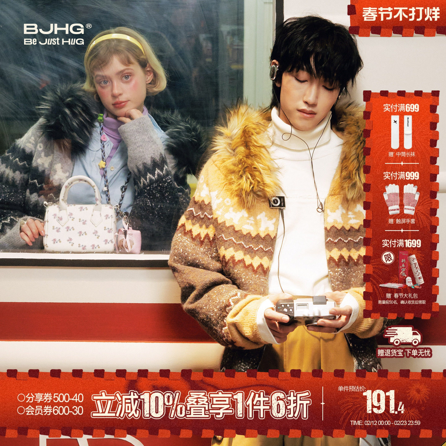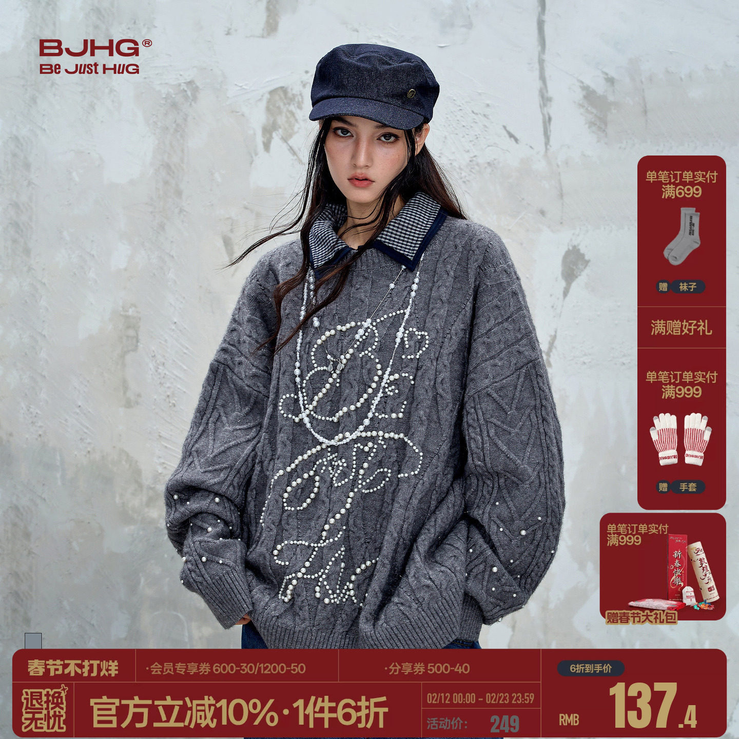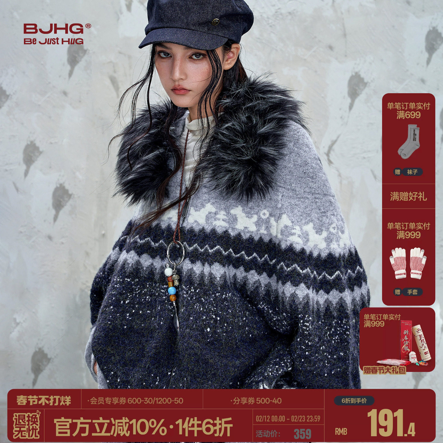 BJHG不计后果费尔岛毛衣男款秋冬可拆卸毛领针织美式情侣装毛衣女