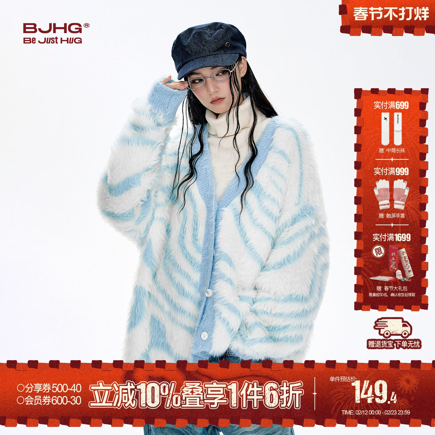 BJHG不计后果仿貂毛毛衣男款冬季新款潮牌斑马条纹宽松开衫外套女