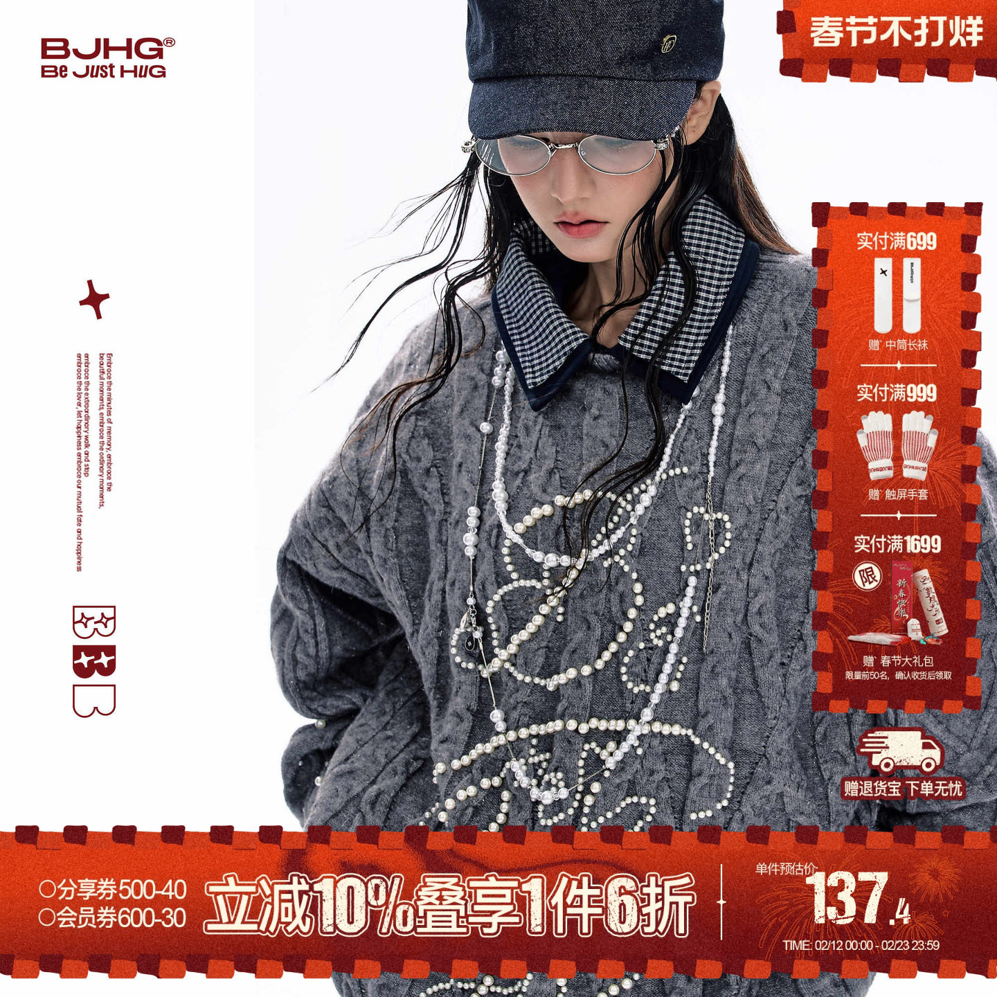 BJHG不计后果毛衣男款2025新款冬季加厚潮套头银丝北极绒针织衫女