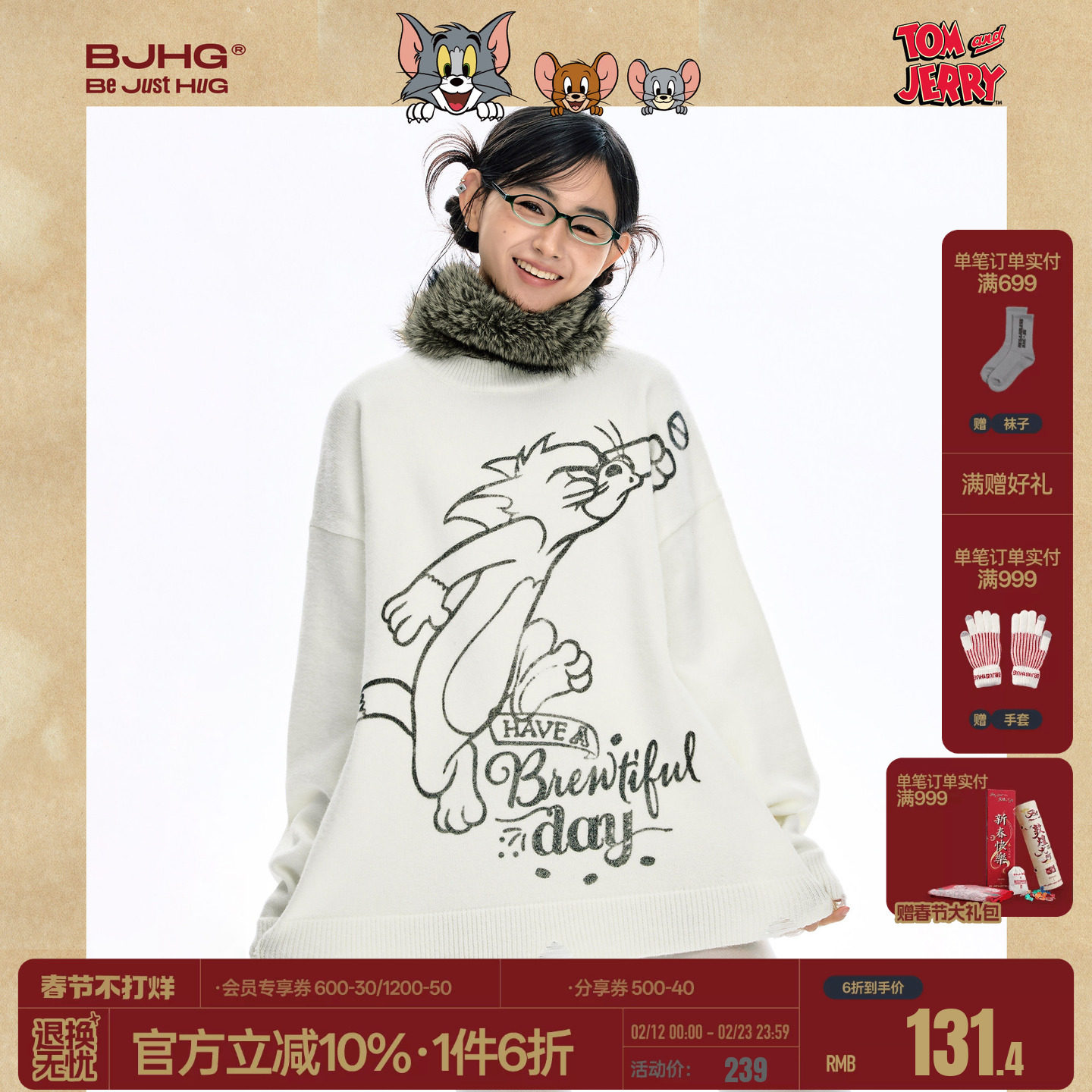 BJHG猫和老鼠联名不计后果抗起球北极绒毛衣男款冬季内搭针织衫女