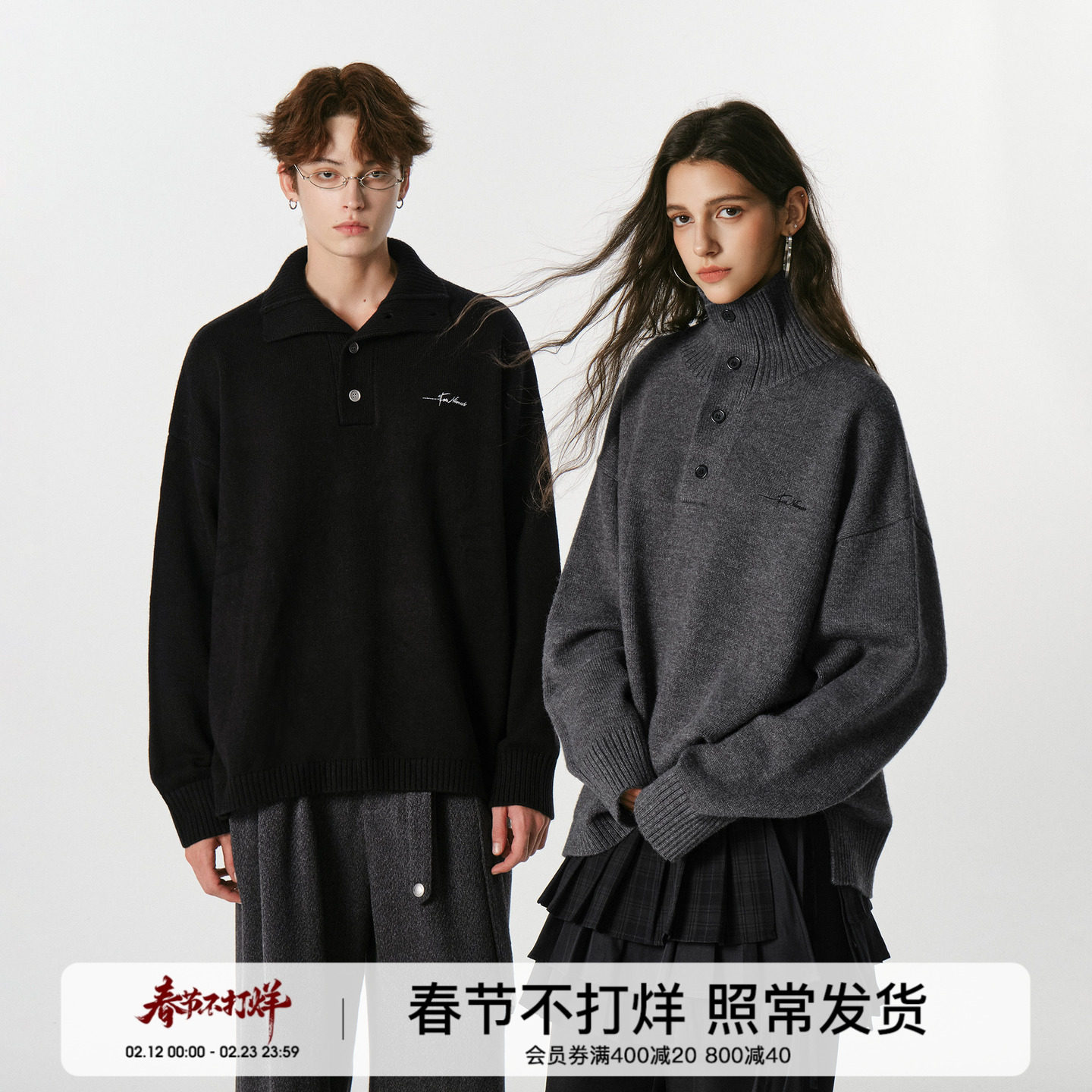 FORNINES可翻高领毛衣男款秋冬慵懒松弛情侣内搭宽松针织衫女上衣