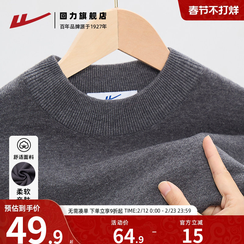 回力半高领毛衣男款冬季2026新款毛线衣男士灰色打底衫中领针织衫