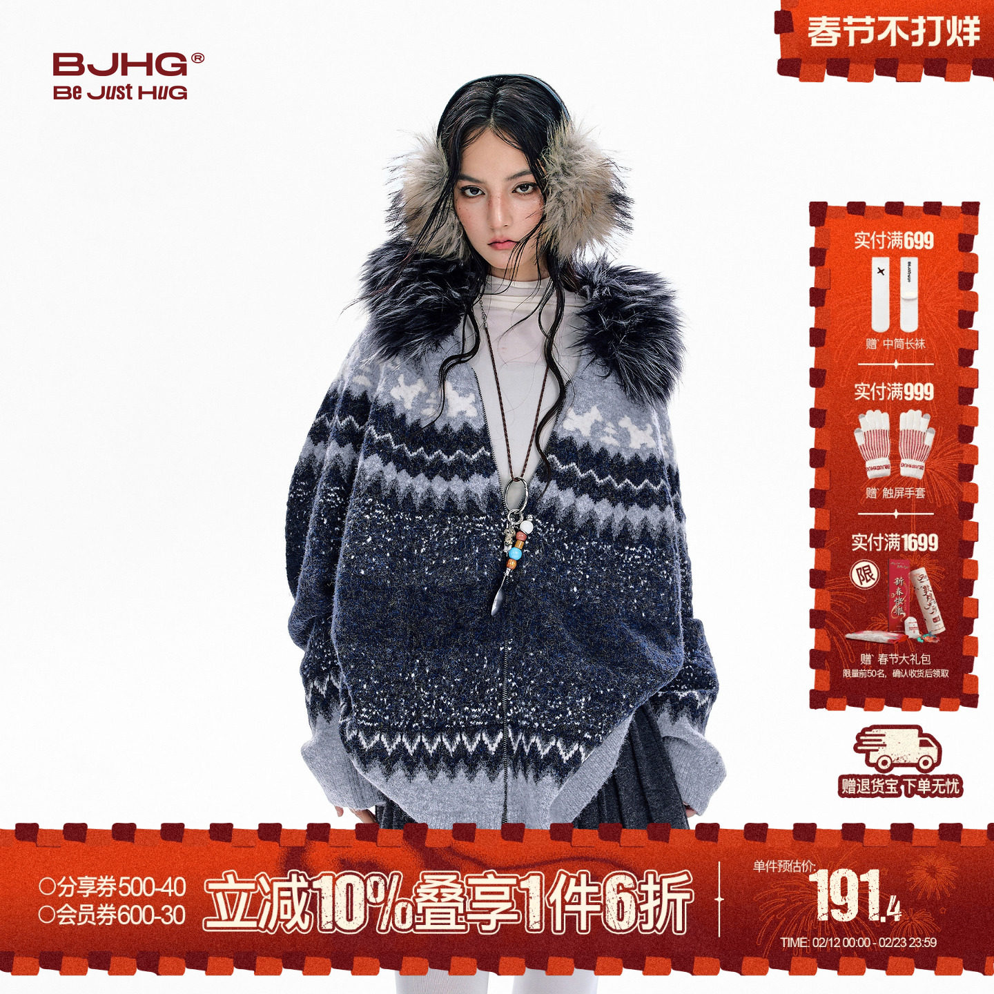 BJHG不计后果费尔岛开衫毛衣男款冬季新款重磅可拆卸连帽针织衫女