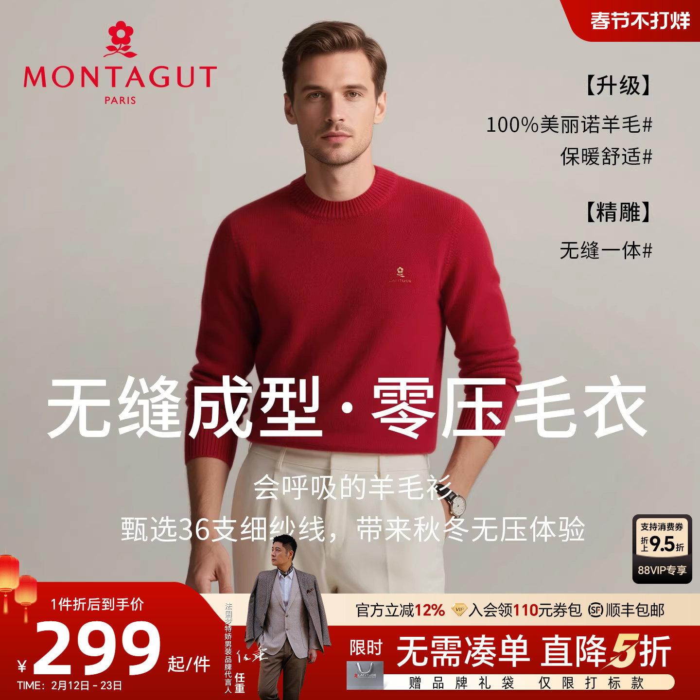 [一线成衣/纯羊毛]梦特娇羊毛衫圆领毛衣男款秋冬中年针织打底衫J