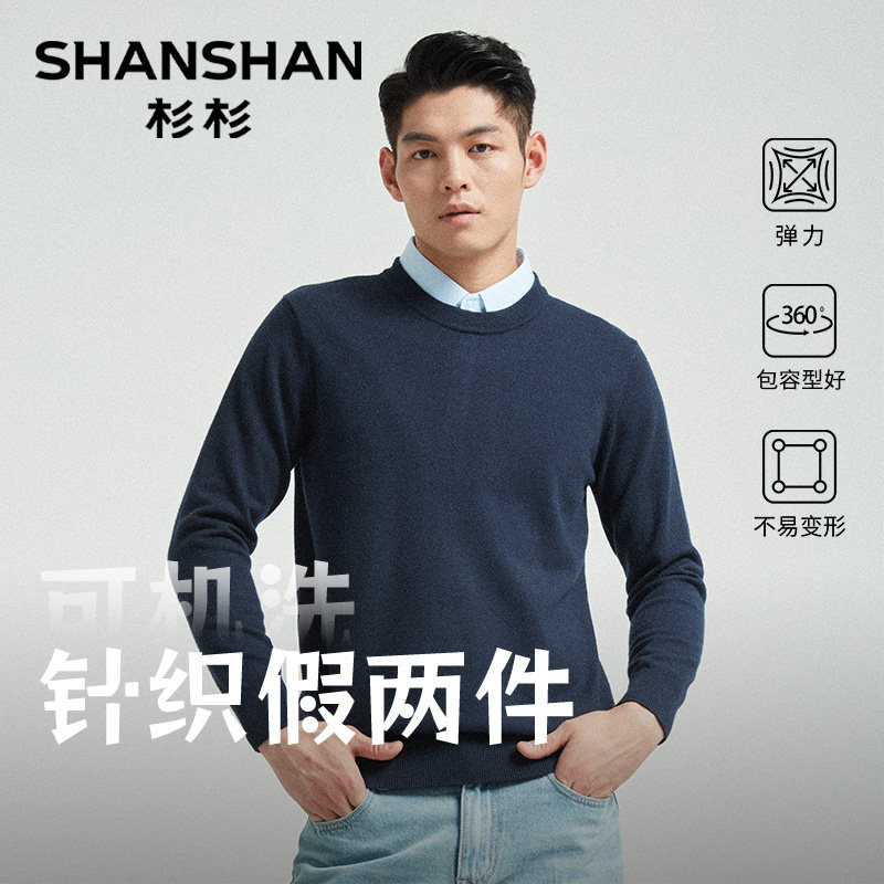 杉杉圆领保暖毛衣男款秋冬季新款2025羊毛衫男士针织衫上衣打底衫