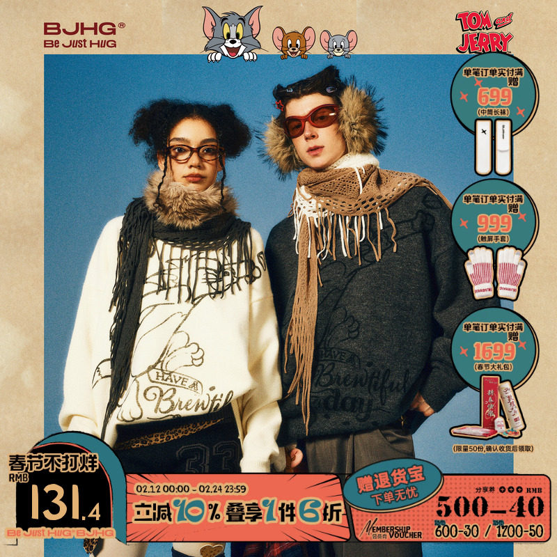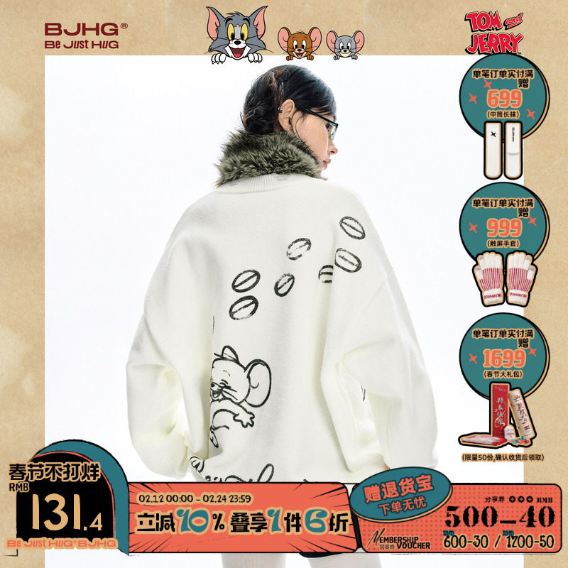 【猫和老鼠联名】BJHG不计后果北极绒毛衣男款冬季休闲情侣外套女