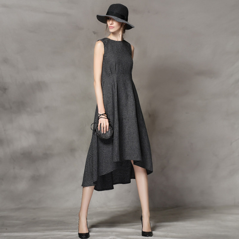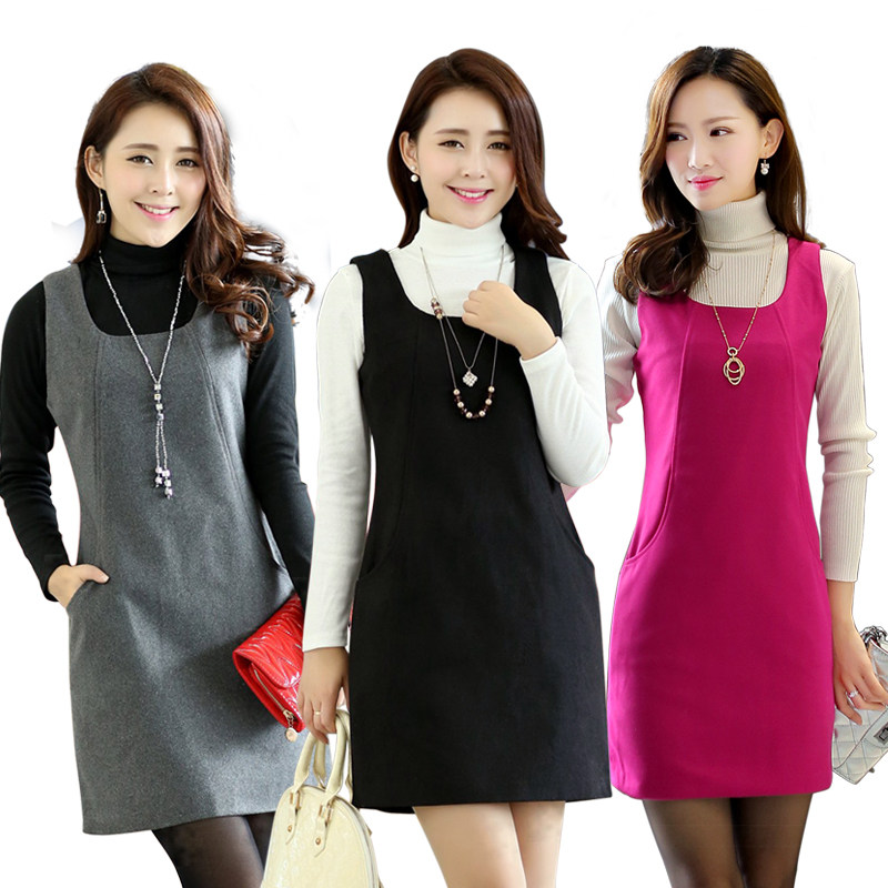 韩国毛呢百搭连衣裙秋冬款背心式,灰色毛料加厚保暖外贸韩版0806