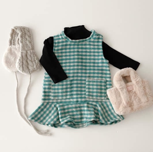 现货韩国进口婴幼童装秋冬款小香风毛呢连衣裙格子背心裙女孩洋装