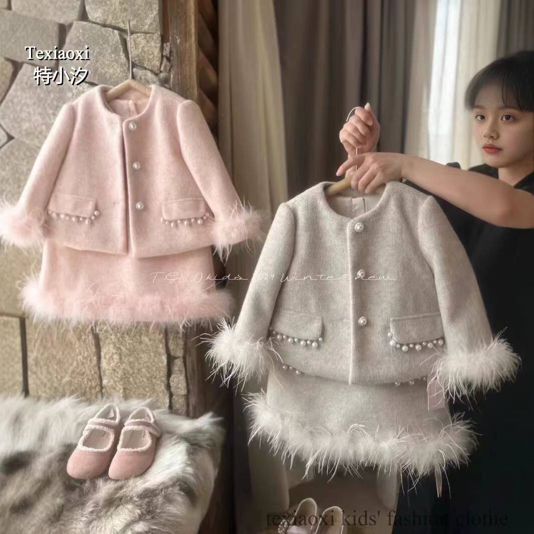 女童毛呢小香风套装秋冬款儿童洋气时髦富家千金短外套背心公主裙