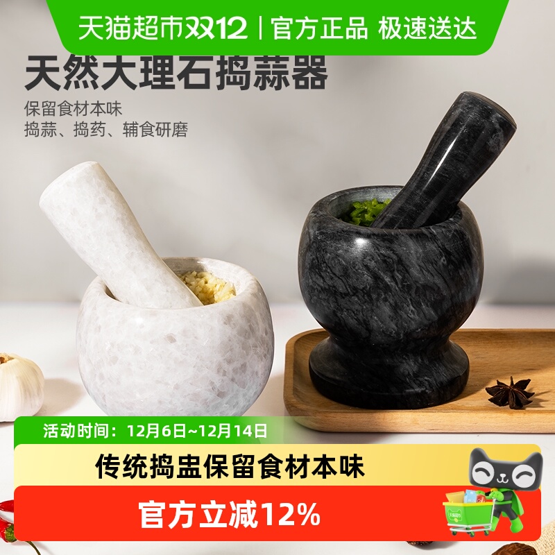 天然大理石捣蒜器石臼蒜臼子压蒜器蒜泥器捣蒜罐家用研磨石头窝子