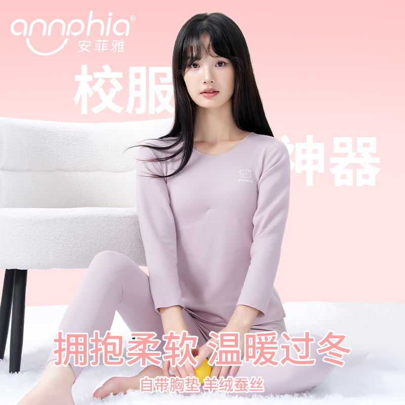 初高中少女秋衣裤套装德绒蚕丝自带胸垫保暖内衣学生大童毛衫2025