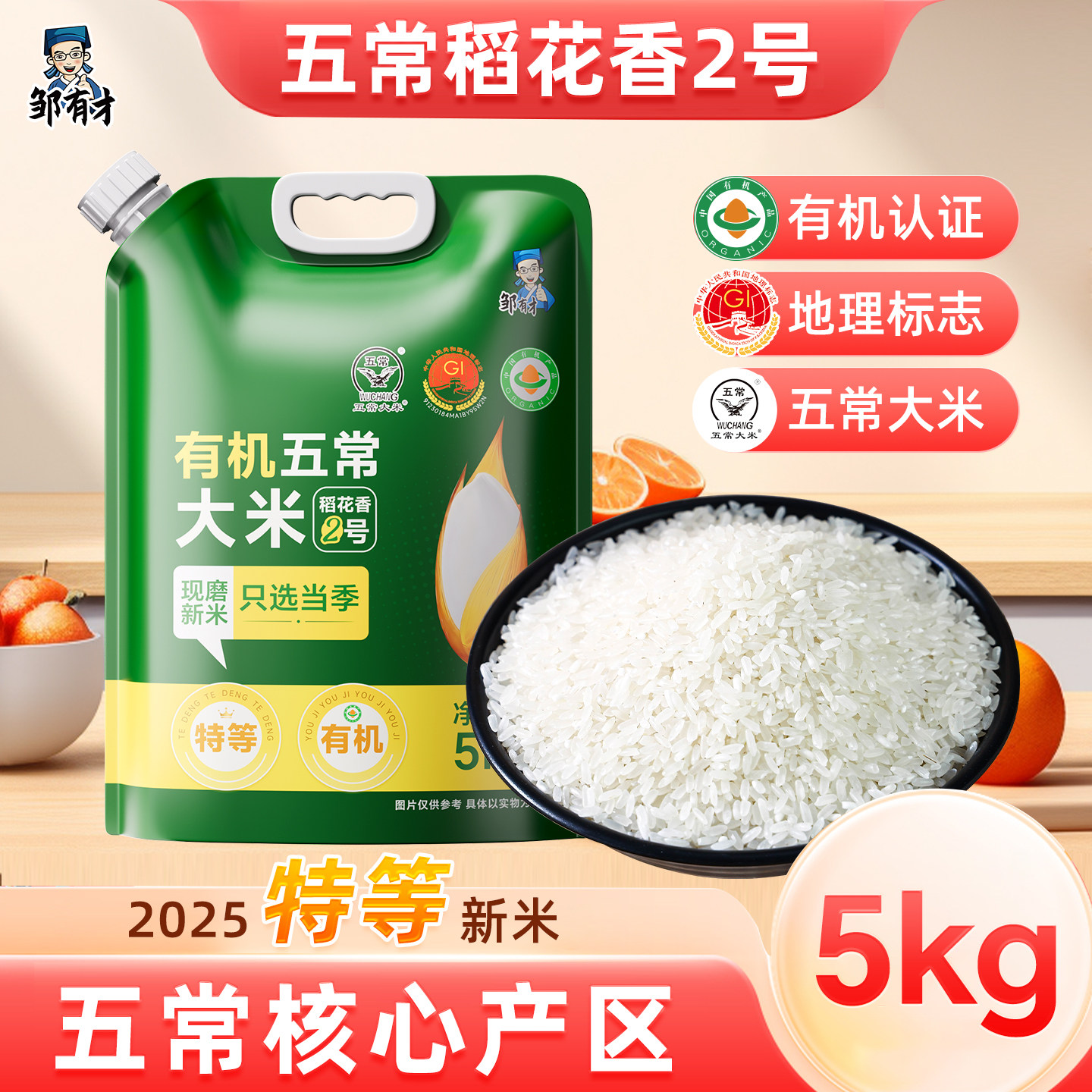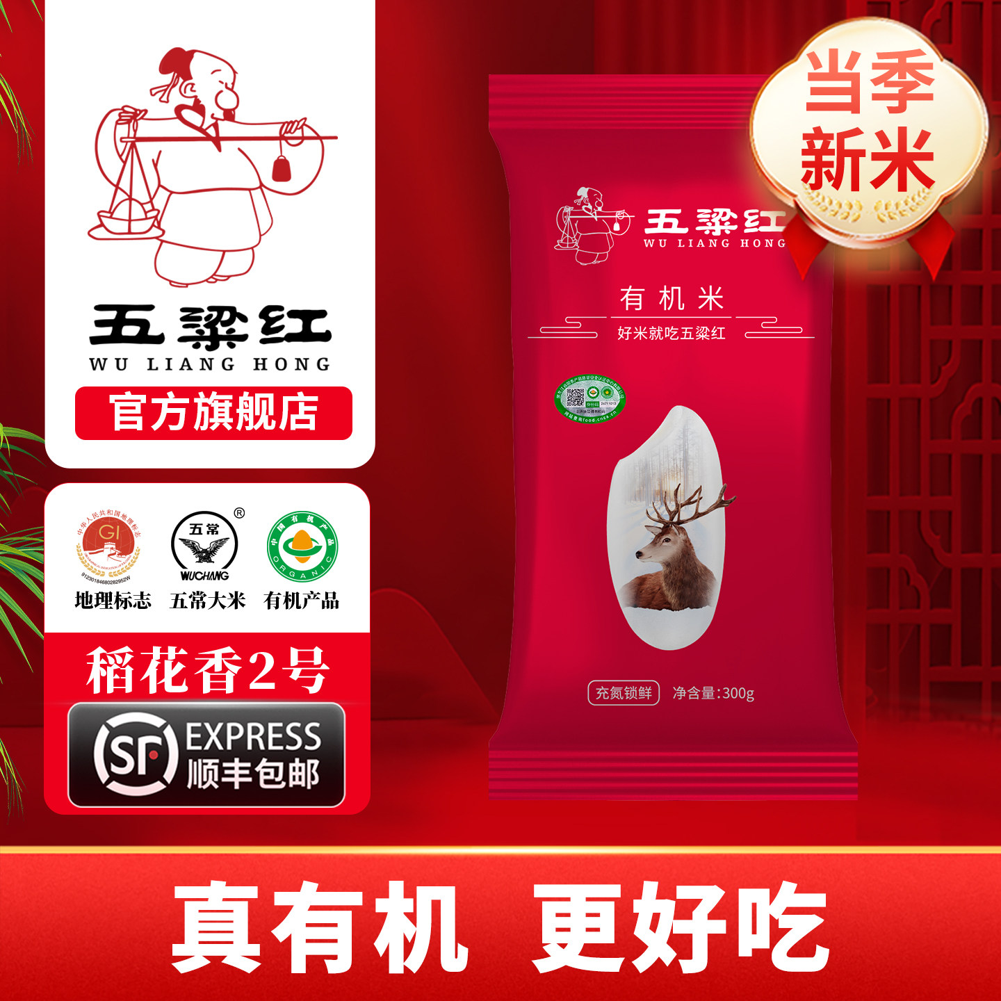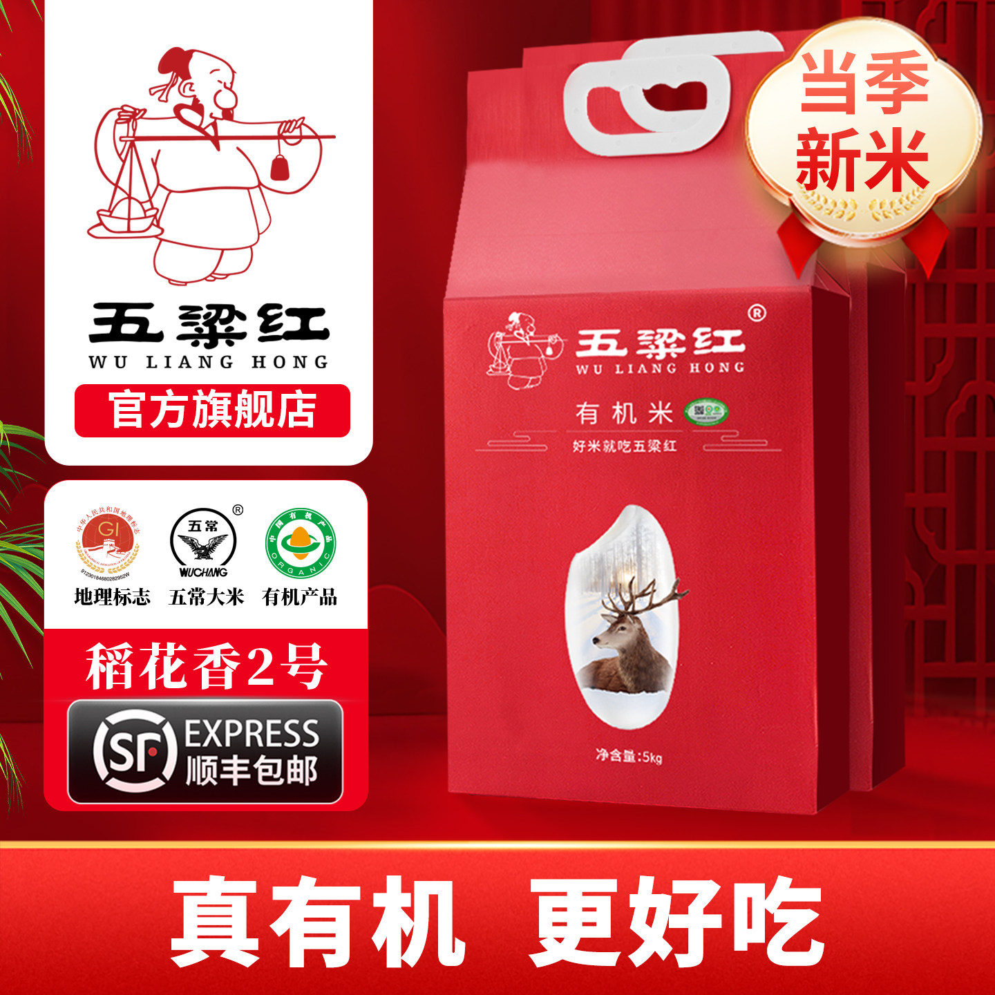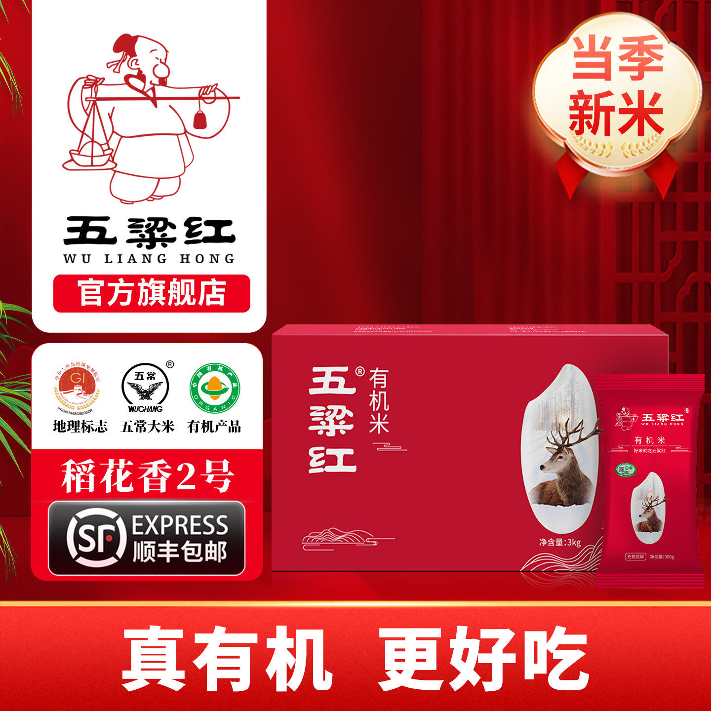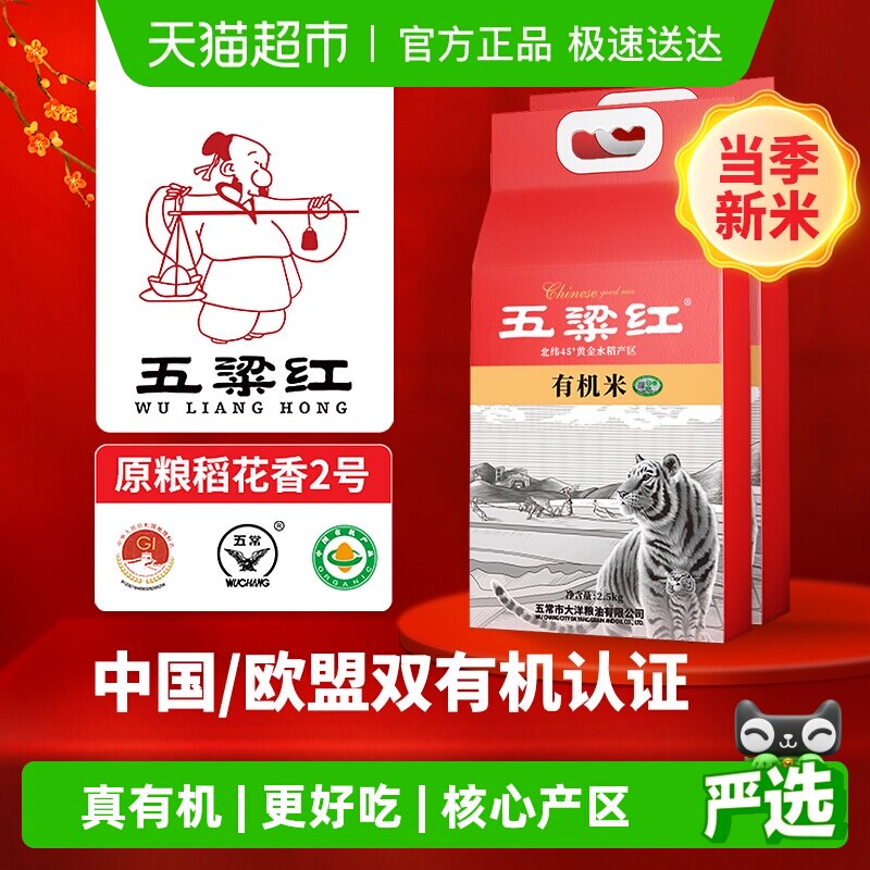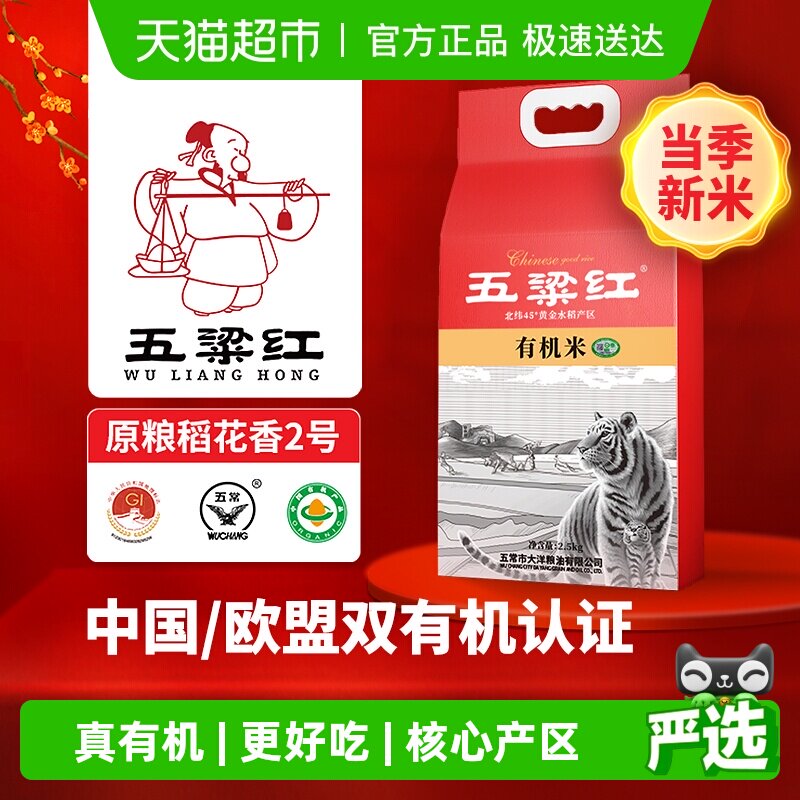五梁红正宗特等有机五常大米3kg原粮稻花香2号2025新米独立小包装