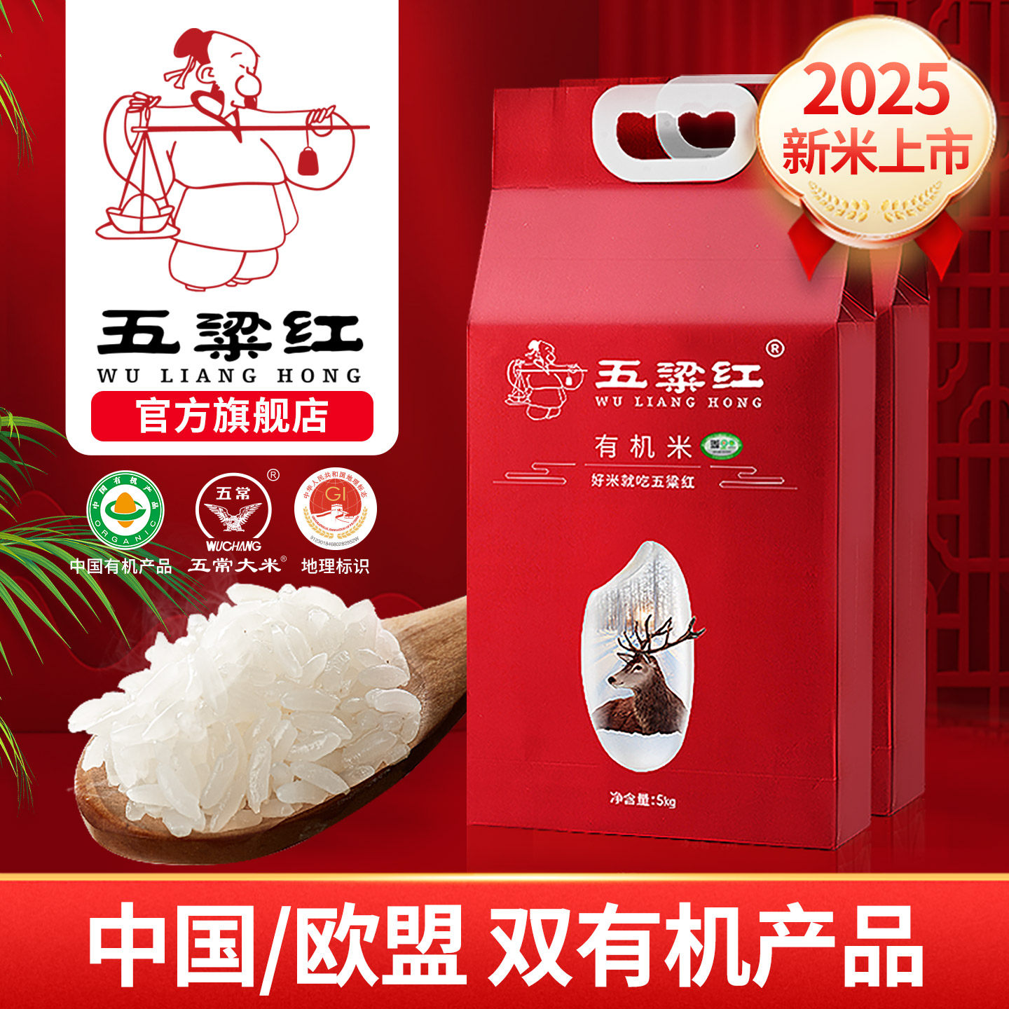 2025新米五梁红正宗特等有机五常大米5kg稻花香2号黑龙江东北大米