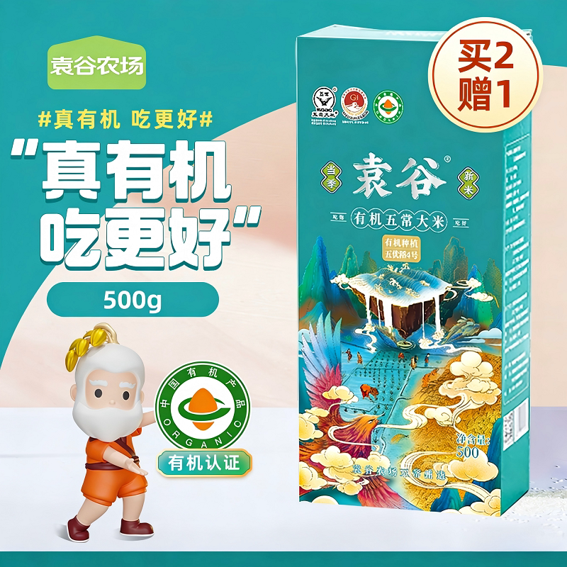 袁谷特等五常有机大米500g*8稻花香2号共8斤真空小包装2025新米