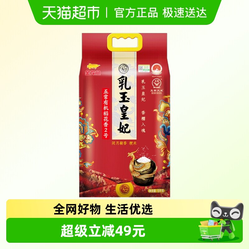金龙鱼乳玉皇妃五常有机稻花香2号5kg东北大米清香软糯弹滑10斤
