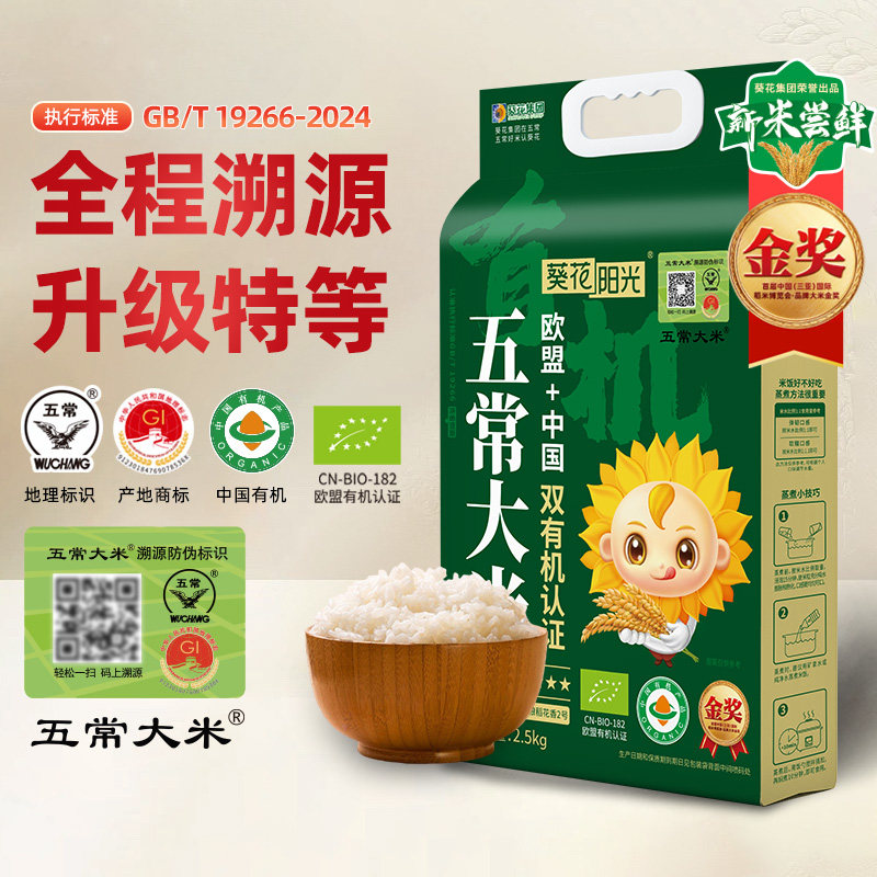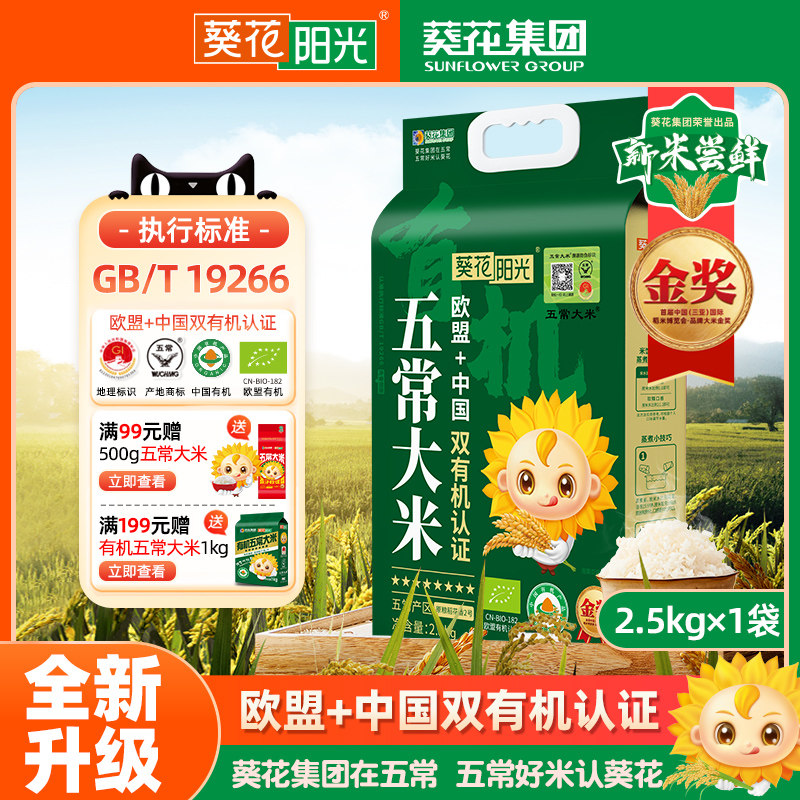 葵花阳光八星中国欧盟双有机溯源特等五常大米2.5kg稻花香2号新米