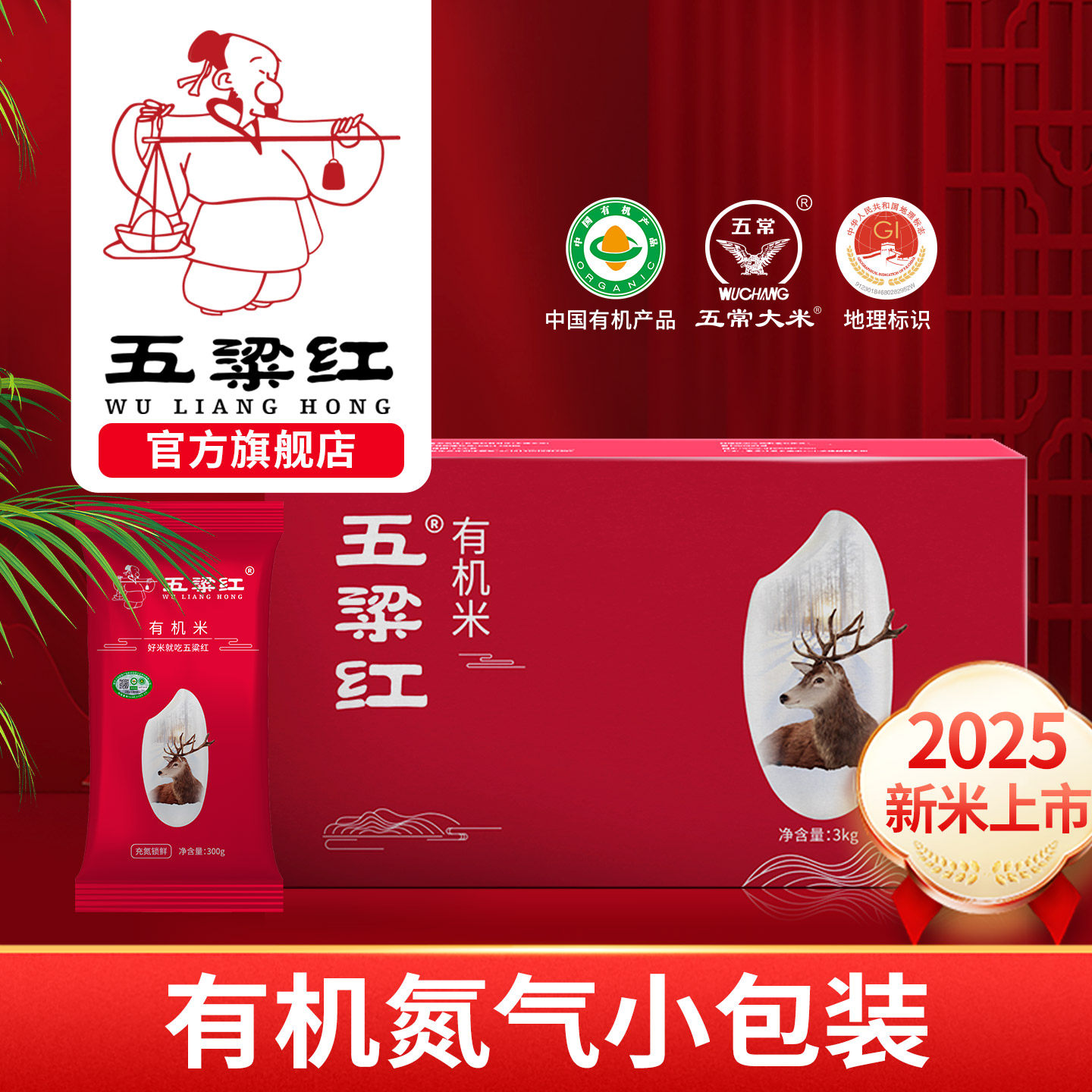 五梁红正宗有机五常大米3kg原粮稻花香2号2025年新米独立小包装