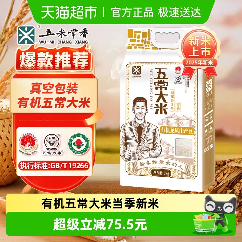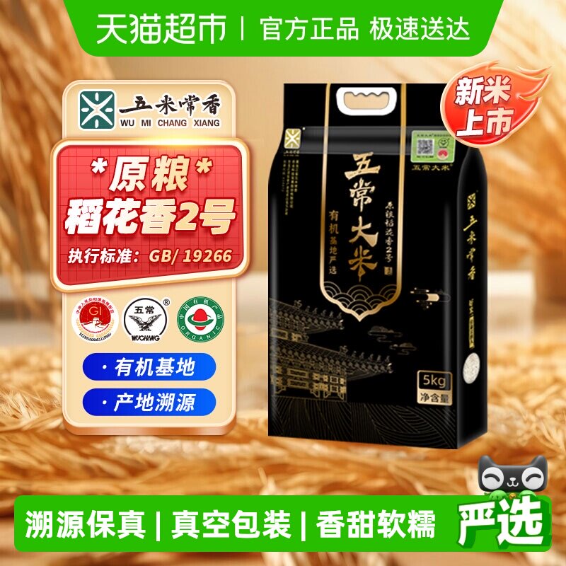 五米常香溯源有机五常大米5kg原粮稻花香2号当季新米真空包装