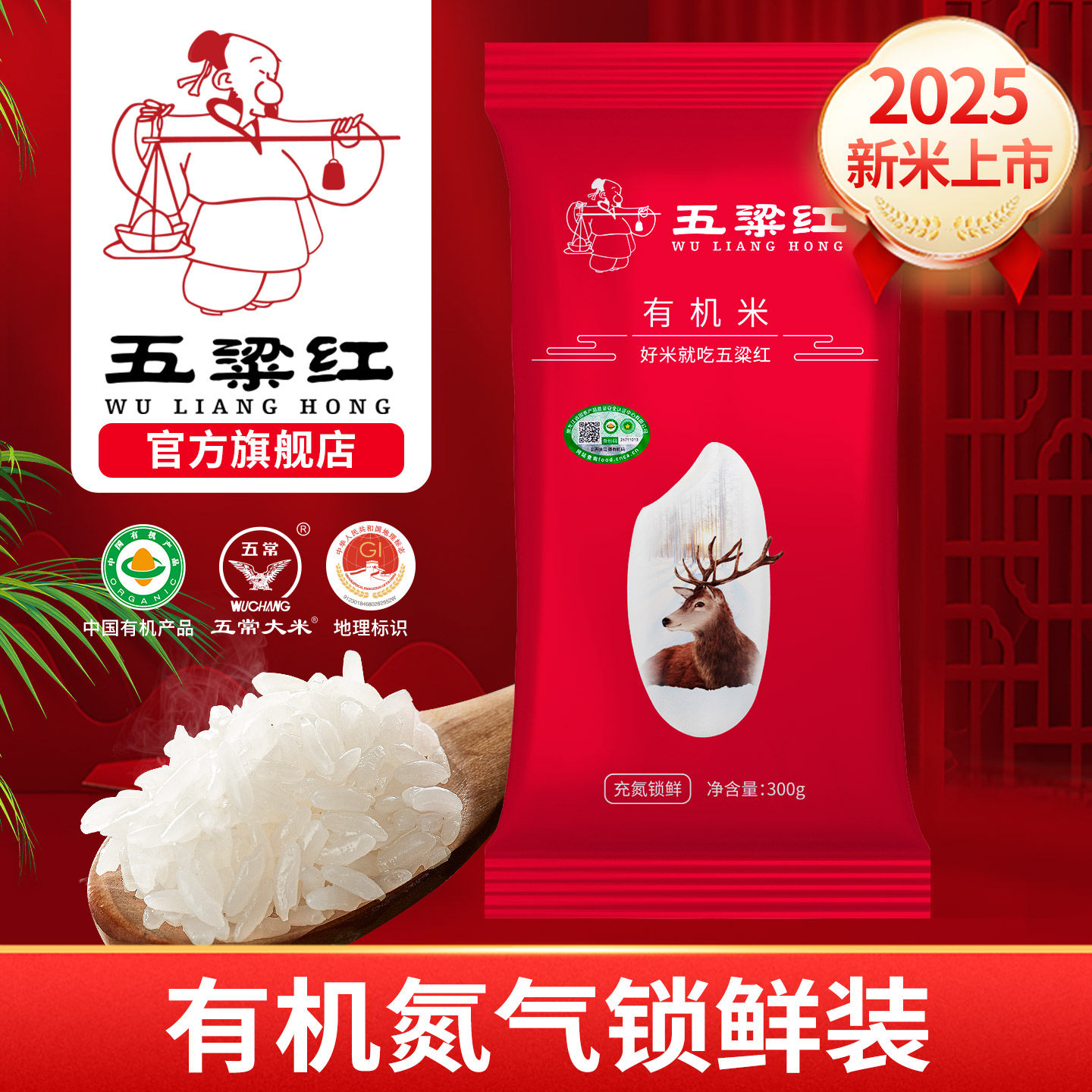 2025新米五梁红正宗原粮稻花香2号有机五常大米小包装300g体验装