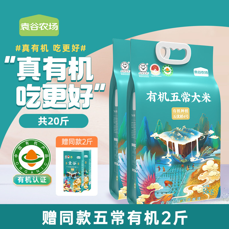 袁谷农场正宗有机五常大米5kg*2原粮稻花香2号共20斤2025新米特等