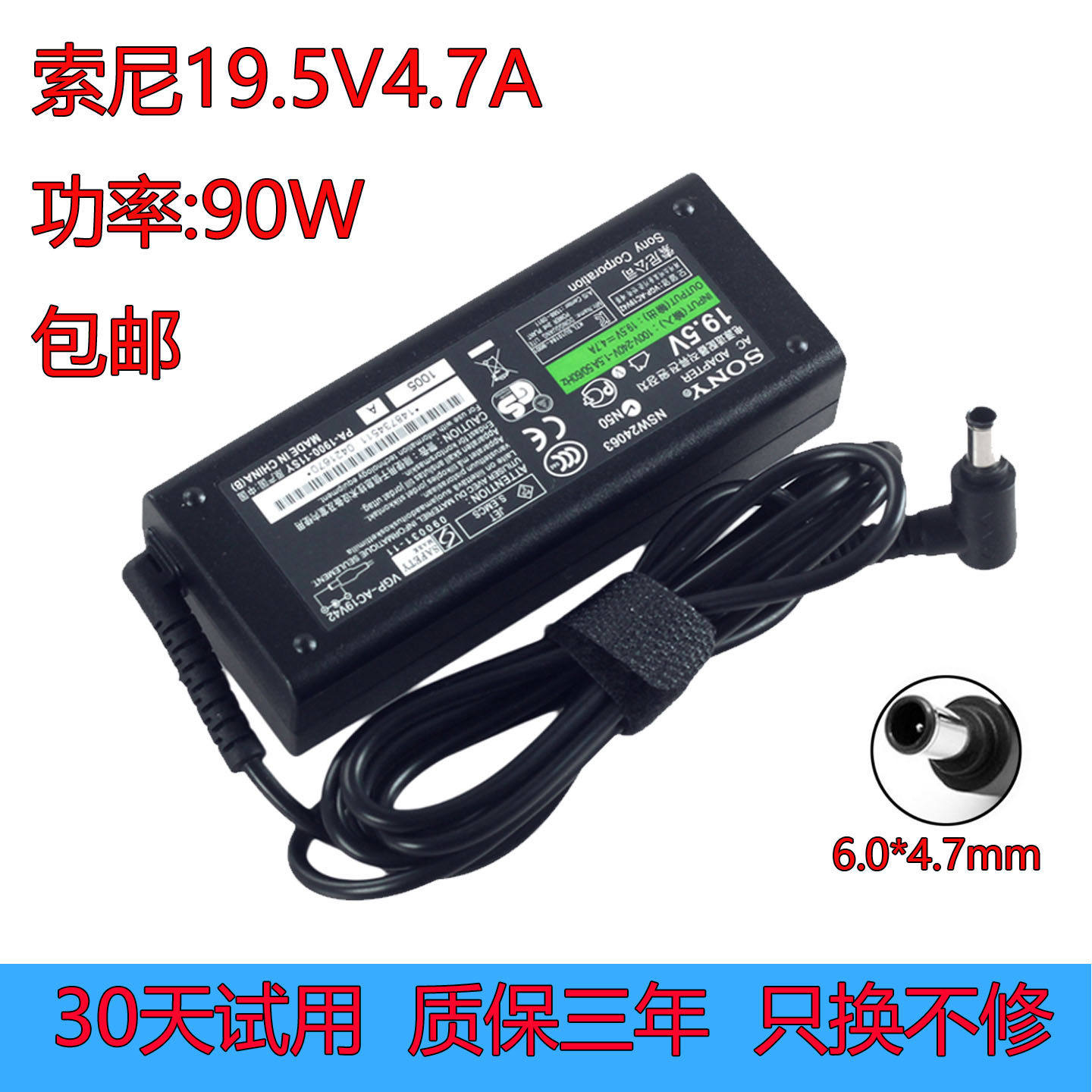 适用于索尼笔记本电源适配器19.5V4.7A笔记本充电器6.0*6.4mm带针