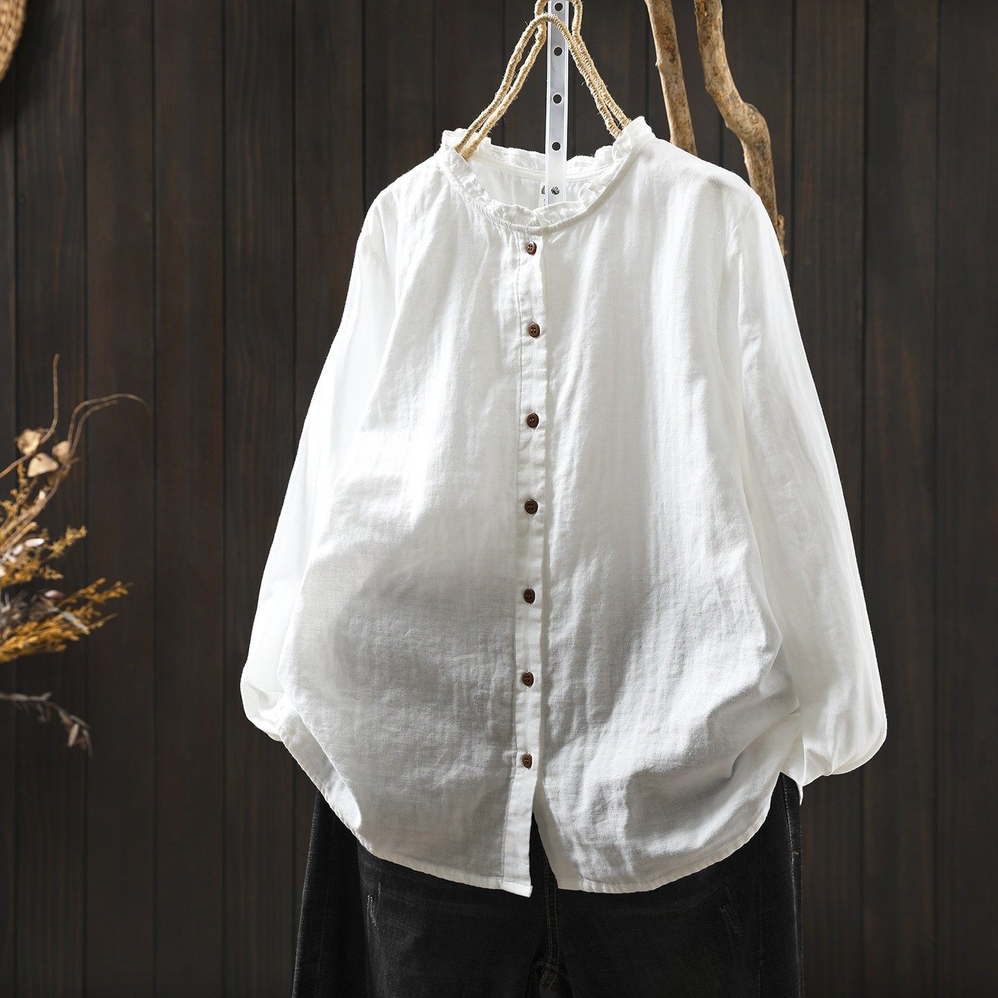 棉麻白色衬衣 女 长袖[第10名]