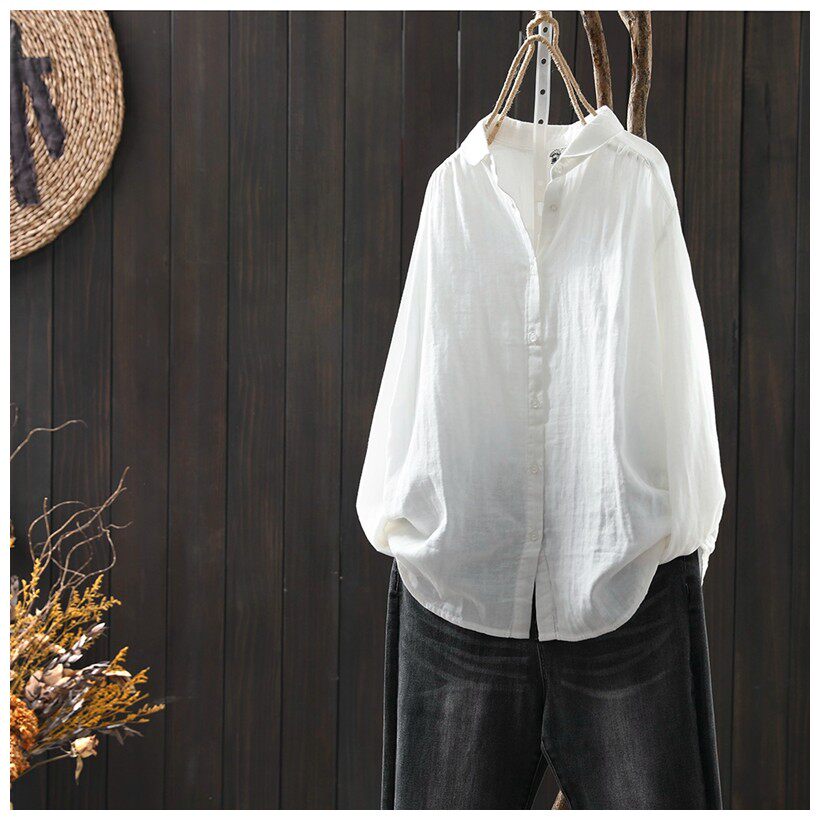棉麻白色衬衣 女 长袖[第7名]