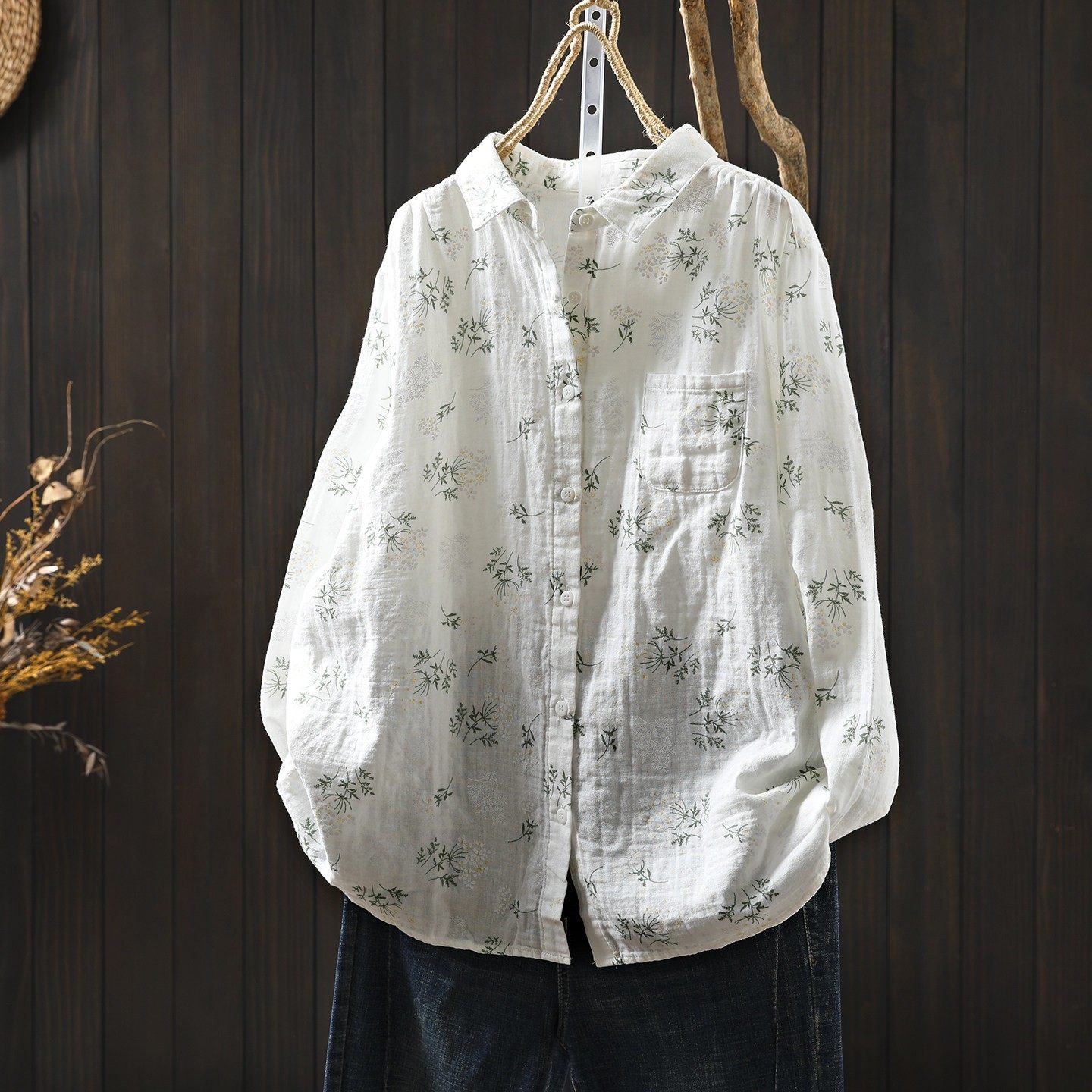 衬衣女款2026新款爆款独特绝美春季宽松纯棉碎花长袖白色衬衫上衣