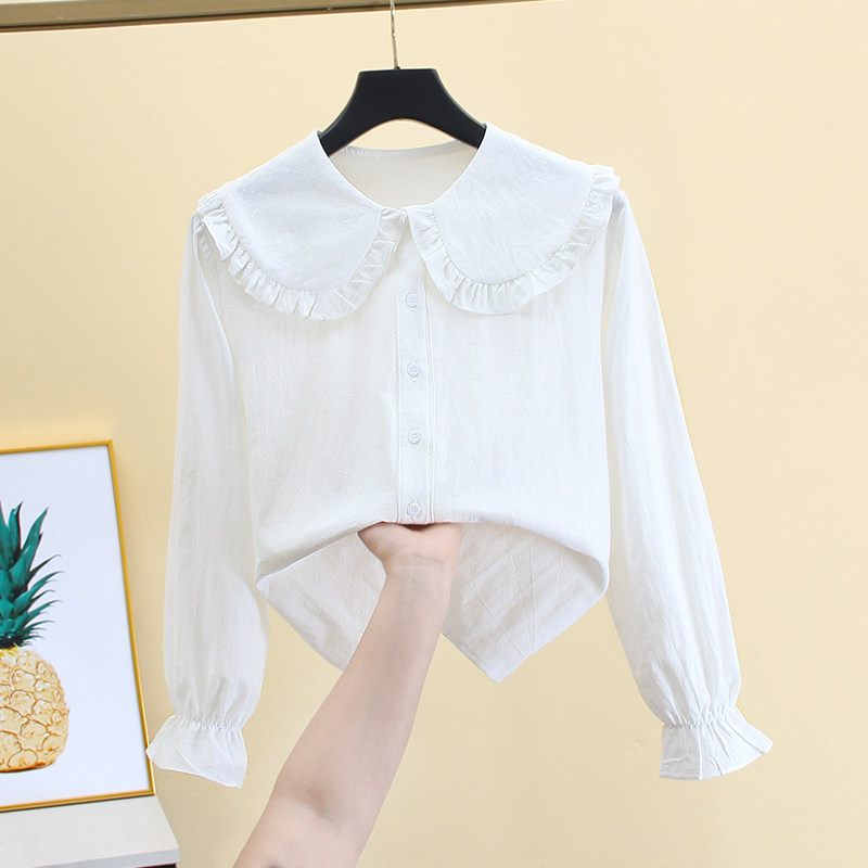 法式白色长袖衬衫女春秋花瓣花边领设计感小众衬衣花边娃娃领上衣