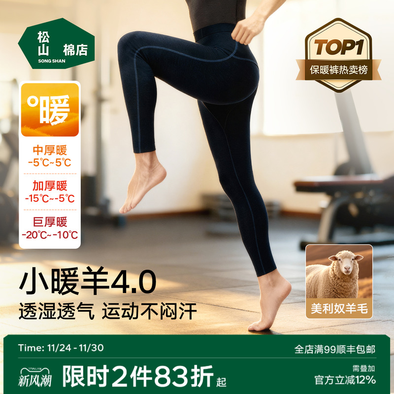 恒源祥集团彩羊100纯羊毛裤男加厚保暖裤女士薄款打底裤秋季毛裤