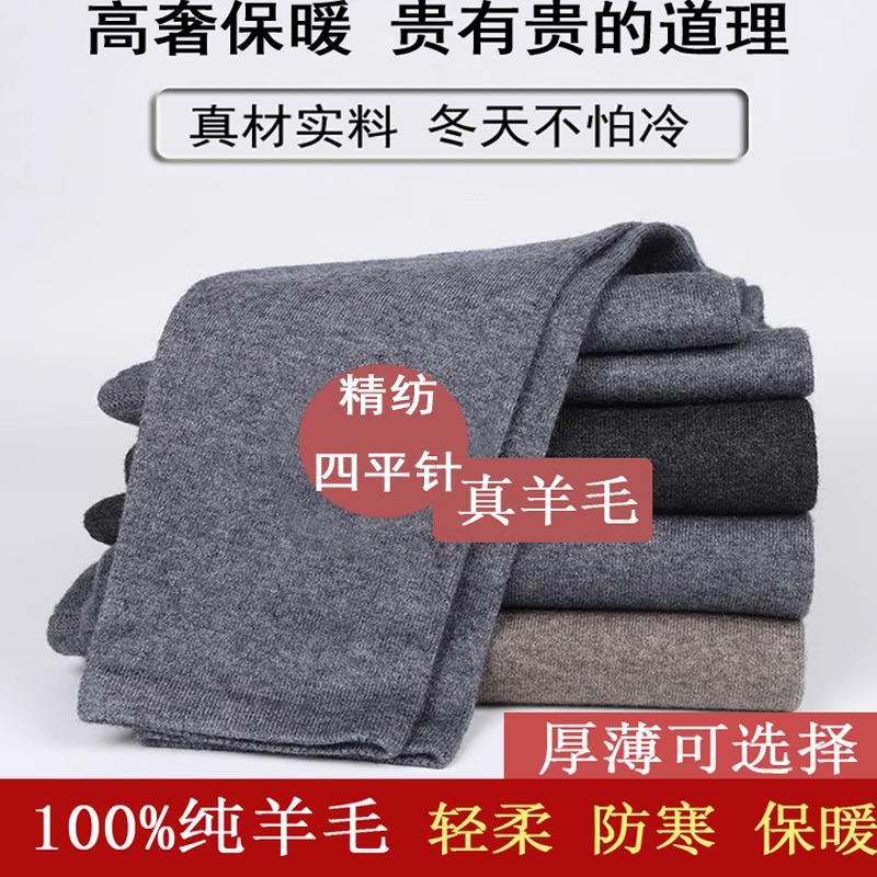 内蒙古冬季纯羊毛精纺羊毛裤男加厚保暖裤女士薄款修身打底羊绒裤
