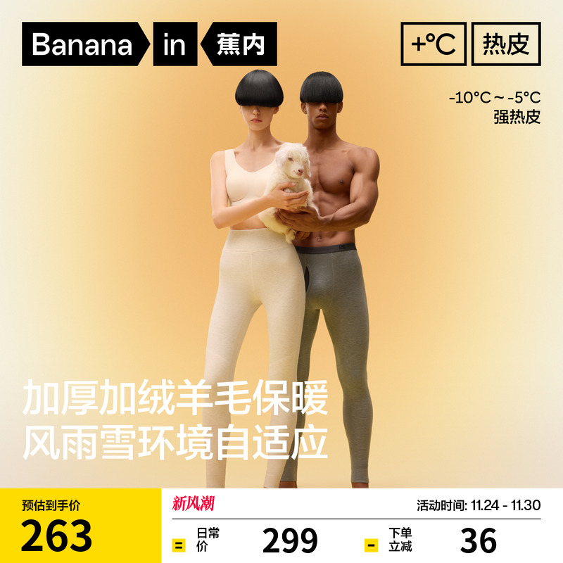 蕉内热皮703+++男女士保暖裤含羊毛秋裤无痕发热秋冬加绒加厚棉裤